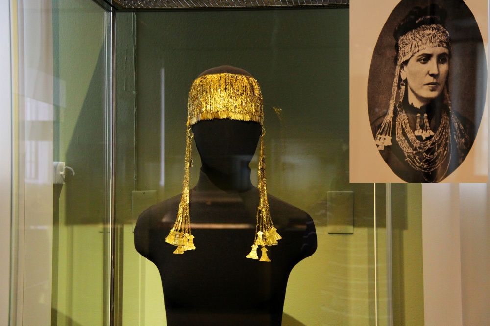 70. 说到普希金造型艺术博物馆内普里阿摩珍宝(特洛伊珍宝)Priam’s Treasure ,就不得不从德国商人兼业余考古学家施里曼说起。从小就对古希腊神话特洛伊战争十分着迷的施里曼,在成为一名成功商人后便开环游世界各地,包括中国。在十九世纪下半叶,施里曼倾其所有前往希腊及小亚细亚半岛。经过多次的挖掘,最后在半岛的希沙利克 Hisarlik 出土了特洛伊珍宝以及其他古希腊文明文物,诸如阿加门农纯金面具等。出土的特洛伊珍宝因原属于末代特洛伊国王普里阿摩,又称为普里阿摩的珍宝。这些珍宝后来被辗转运回了施里曼的祖国即德国,保存在博物馆岛上的柏林新博物馆内。二战后期因苏军占领柏林而成为苏联的战利品,之后虽有部分被归还给同为社会主义阵营的东德政府,其余则一直滞留在苏联境内。苏联解体后,俄罗斯更是通过法律将这些珍贵文物视为德国对苏联二战损失的补偿而永存俄罗斯。当年施里曼让他新婚的希腊妻子戴上这珍宝作模特照了一张照片流传下来。施里曼是特洛伊的重要发现者, 从另一个角度来说,又是特洛伊的破坏者:特洛伊的历史积淀有五层之多,施里曼为了挖掘下层而不惜炸毁上层。。。