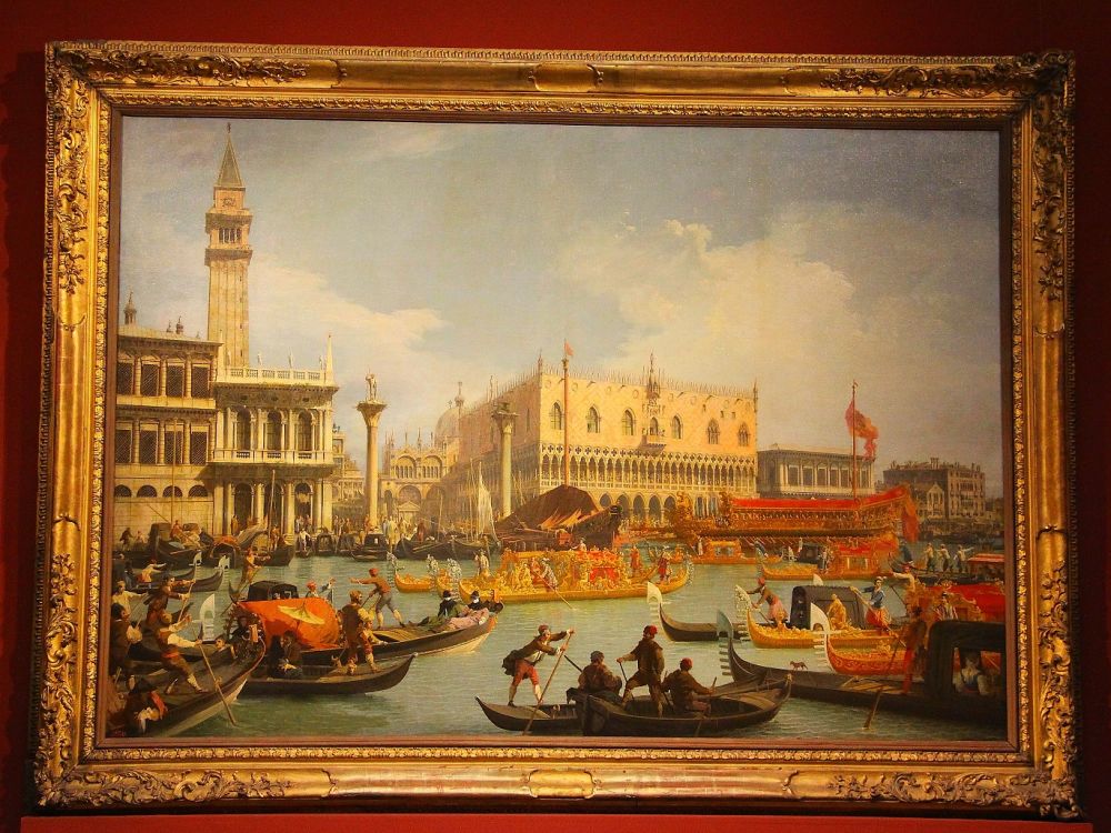 72. 《公爵驳船返回总督府》,描述海上商贸强国威尼斯共和国一年一度“亚得里亚之婚”的庆祝活动的场景。