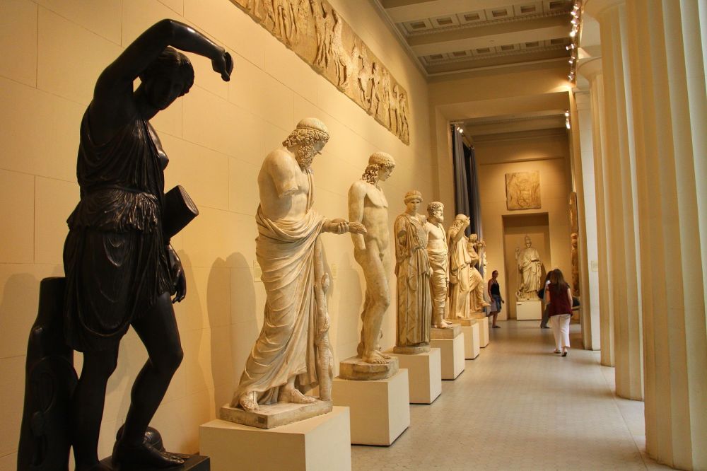75. 普希金造型艺术博物馆内的另一看点就是众多的古希腊雕像的现代石膏复制品。如果你没有机会到西欧诸国的博物馆去参观,在这里你可以一次看个够!在圣彼得堡的彼得霍夫夏宫后花园,更有披着金装的古希腊雕塑为你补齐这里的所缺。