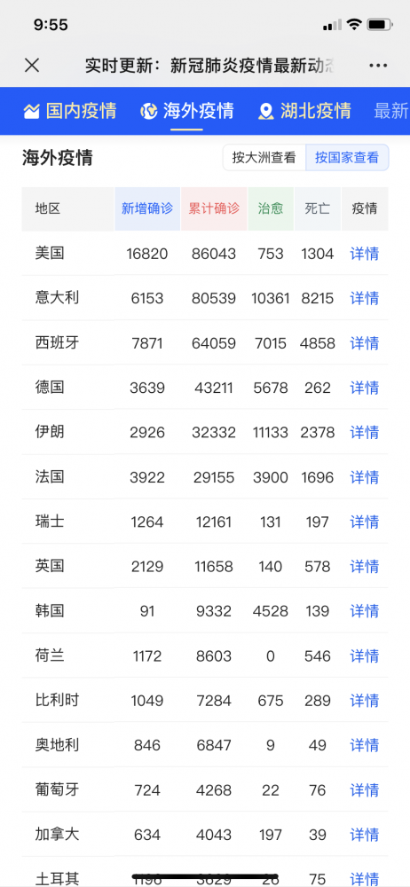中国以外确证病例445177人,过八万的国家除中国(82163))外,已有美国(86043)、意大利(80539)。
