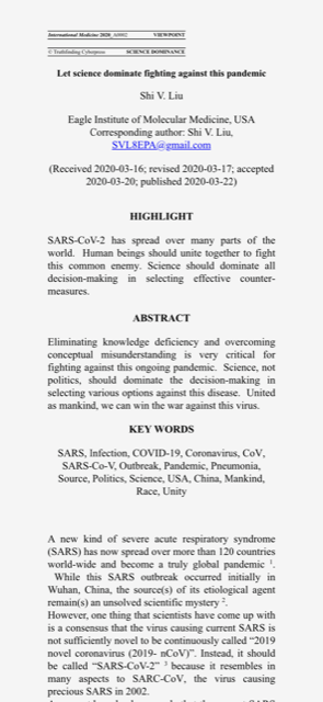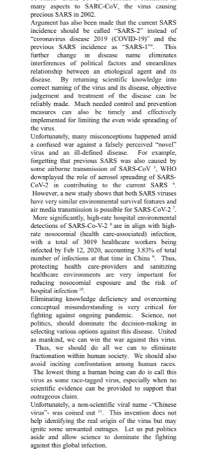 后来,我给一些“顶尖”的医学杂志投稿,指出“萨斯2病毒”可以通过空气媒介传播,而且这种传播可能是医院等人群密集地方感染危险高的一个重要原因。可惜,这样的看法因为不合“主流”被拒绝发表。