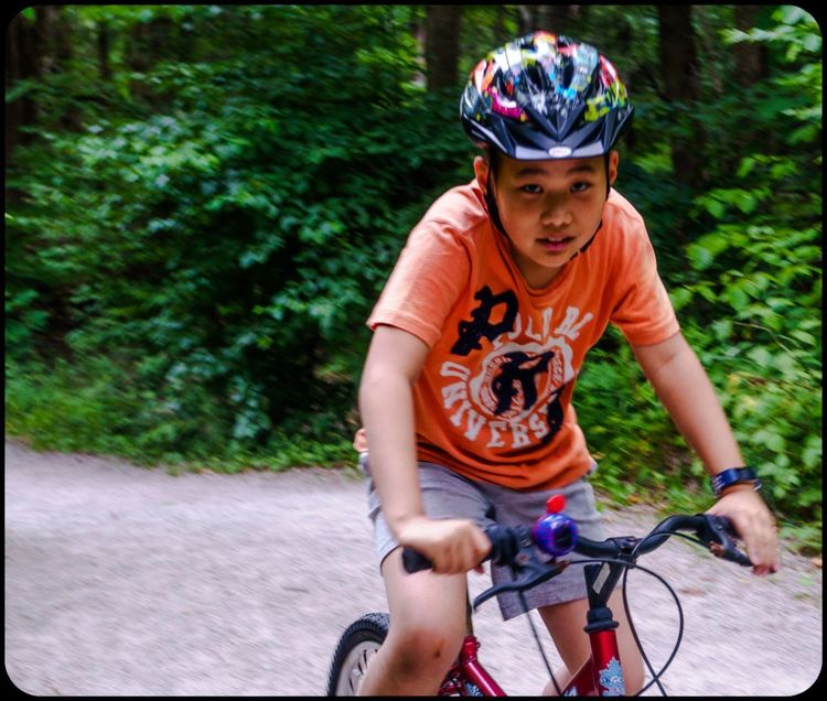 Trail的地势很平坦,儿子很高兴地骑上了他的自行车。