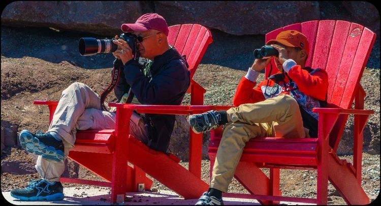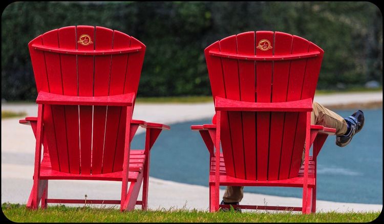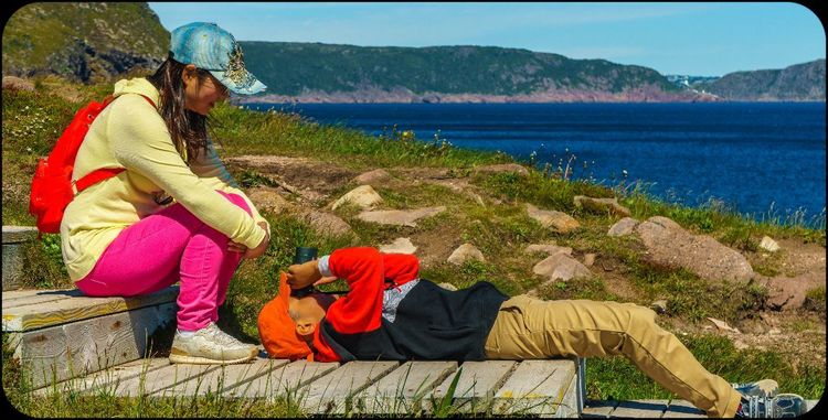 在Cape Spear的休息站,我们又看见了熟悉的红椅子,儿子躺在上面小憩。