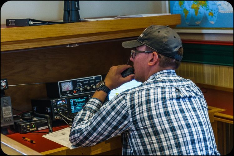 我们走入塔中,一楼依然有工作人员在对着电台呼叫。