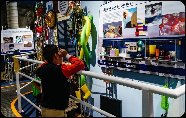 中心看不到别人,我们陪着儿子耐心地一个个展览看过去。这个部分是介绍构成地球的成分。
