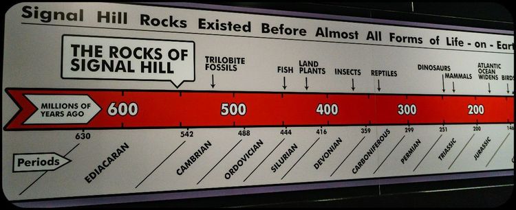 这条长长的甬道里面的时间进程表反映了Signal Hill的岩石的年龄,它形成于5.5亿年前!