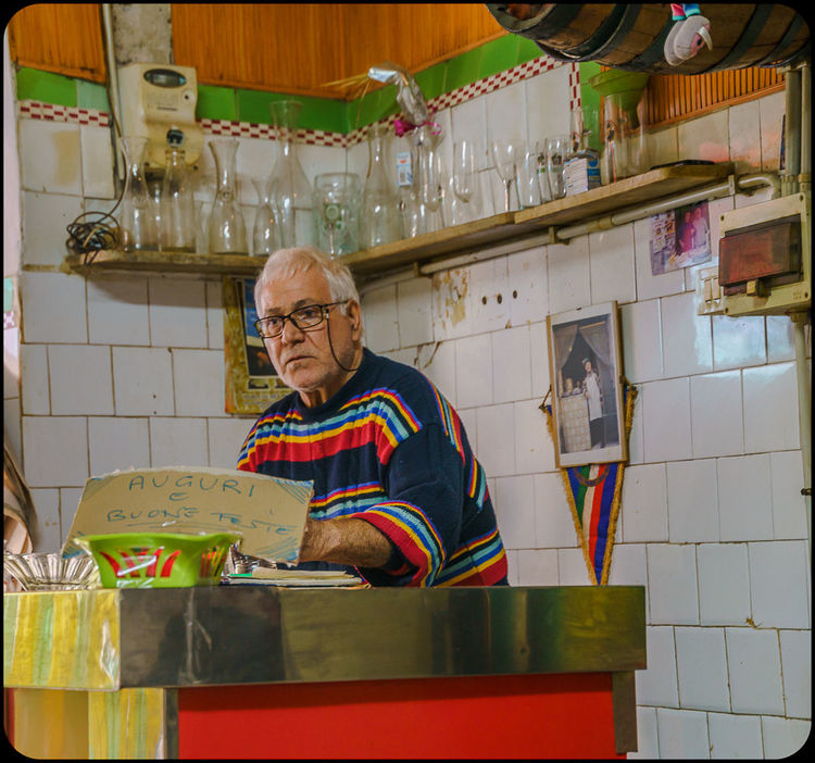 年老的店主静静地坐在柜台后面,看着街上人来人往。