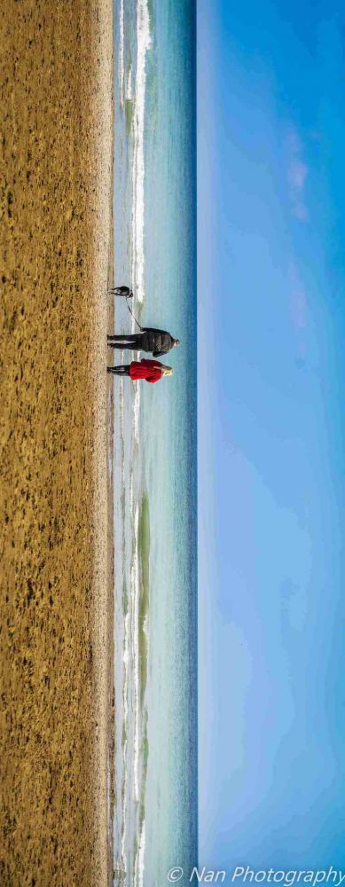 沙滩上,一对夫妻牵着狗在散步,蓝天,黄沙,白水,那一刻就这么凝固在我眼前。。。