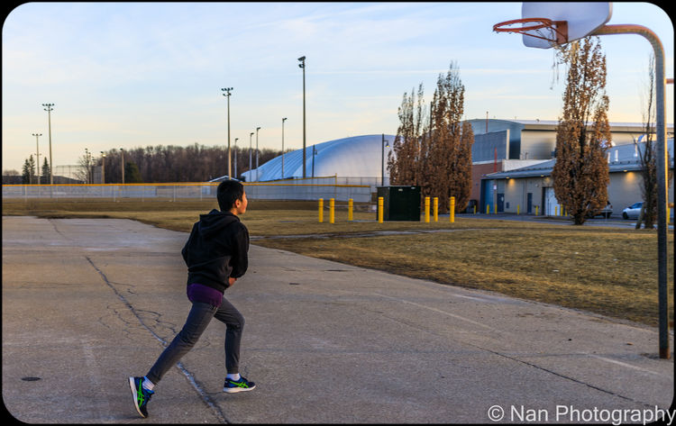 憋了一个冬天,儿子终于可以在室外打球了。