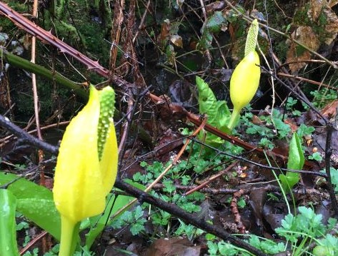 初春溪边早早露脸的臭菘(Skunk Cabbage)