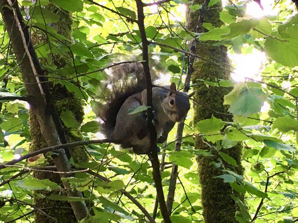 一只探头探脑从树上跟我打招呼的松鼠