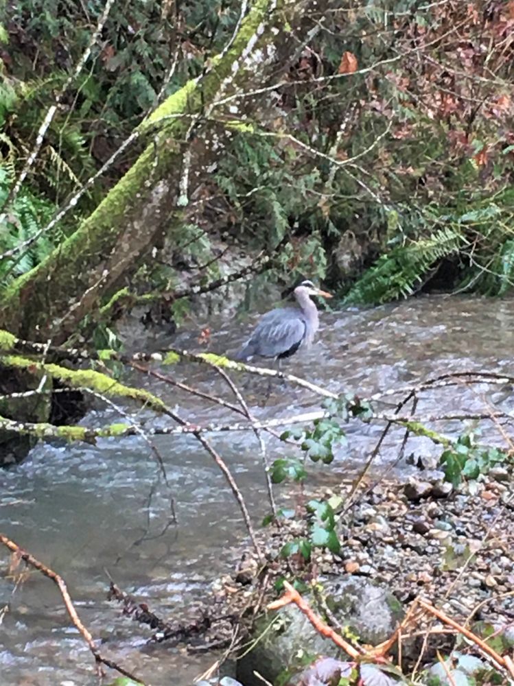 秋天小溪里捕鱼的蓝鹤