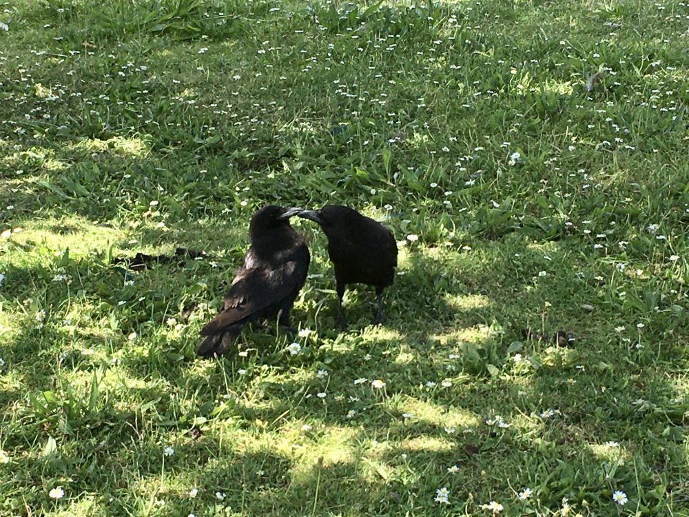 两只旁若无人卿卿我我的乌鸦