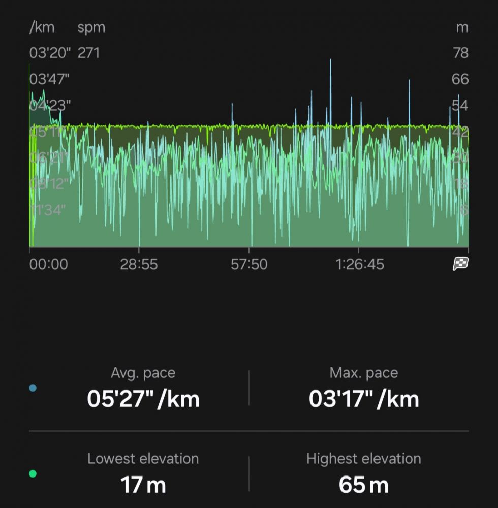 不过周六跑还是有优惠的,回家可以无所事事,睡一觉也可以,不像周三跑完就得马上上班。为了平衡一下,今天正规21公里跑完后,在兴奋状态下又跑跑走走了7公里才回家。