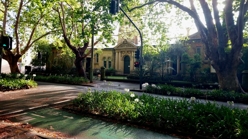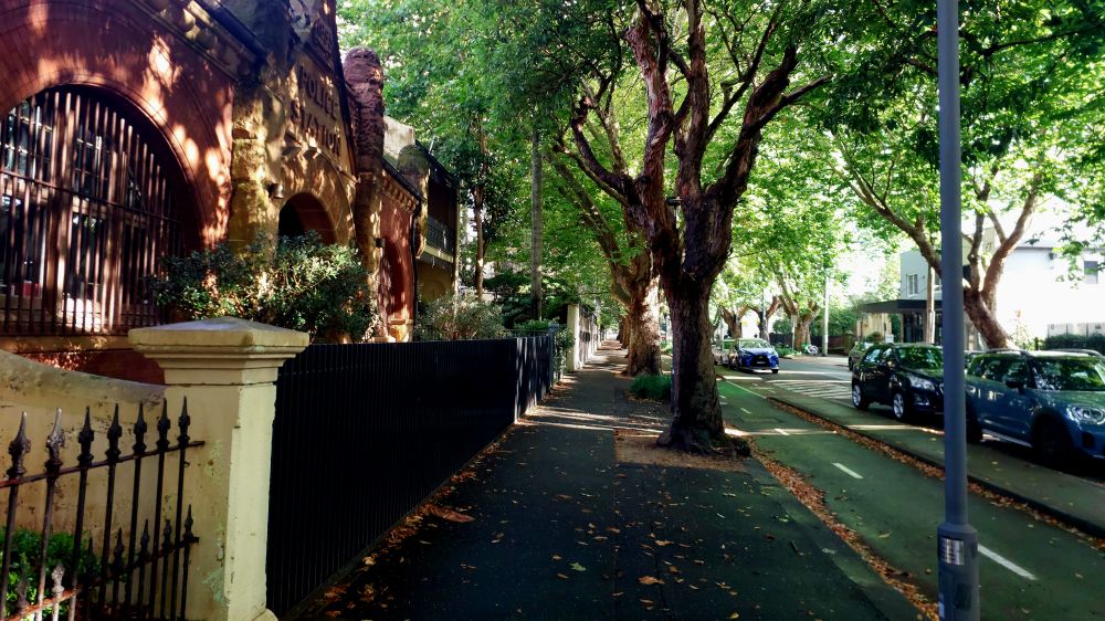 昨天周日中跑,28公里,本来打算去邦迪海滩,但因为预报气温要30摄氏度,就改了跑去城里,并尽量选绿荫浓密的老旧小街跑。