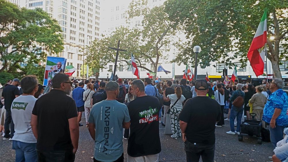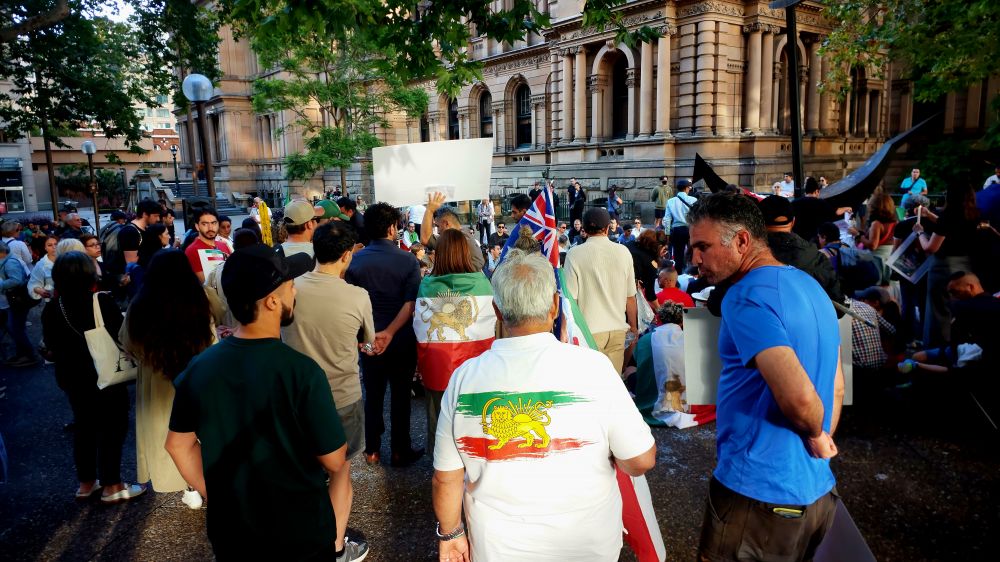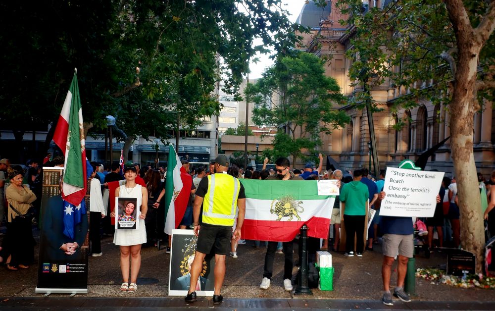 回来路上经过市政厅,见有人群举着前伊朗王国狮子旗在抗议。