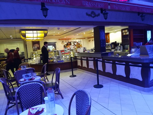 五楼也没有了白天的繁华,此时毕竟是凌晨两点多,酒吧里还有几个没有喝够的人,走来走去的是几个工作人员,也许夜班工作的轻松让他们有可能闲散一下吧。从五楼下到四楼的楼梯口,看得到四楼的Casino不仅是灯火通明,更听得到那里人声喧闹。毕竟是游轮,上来的人有很多种,喜欢玩到天亮的人也不算稀奇。我从咖啡壶的热水口接了热水,回到房间,悄悄爬回自己的小床,没一会儿就又睡了。