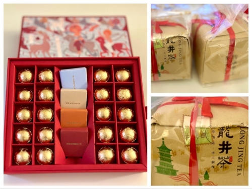 “那个金球包的是沱茶?或者巧克力?”,麦姐说对了,是普洱沱茶,看介绍,是模仿巧克力包装。一盒很是精美。