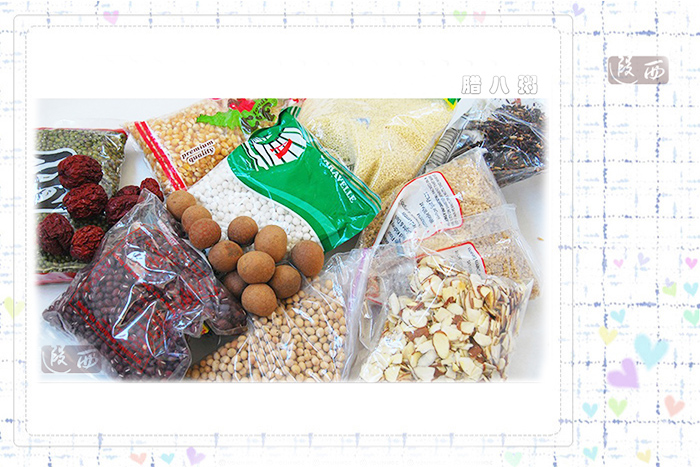 今年腊八有点晚,都近一月底了。在中国,有腊八节喝腊八粥、泡腊八蒜的习俗。说是喝腊八粥有温暖、圆满、和谐、吉祥、健康、合作、营养、淡泊、方便、感恩、欢喜(以粥代茶)、结缘等意义。腊八粥的这个“八”其实与数量无关,其实就是在腊八节这一天,汇集四面八方的食材,表达人们合聚万物、调和千灵的愿望。 腊八粥的食材丰富,各地各家各有不同,但总含有一些花生、大豆、绿豆、赤小豆、芸豆、蚕豆、核桃、粳米、薏米、小米、大米、桂圆、龙眼、红枣、桂花、红薯、松子、乳蕈、白果、百合、莲子、柿子、板栗、蜜饯、......等等。