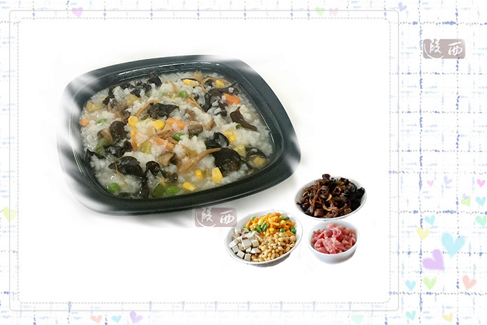 南方人有喝稀饭的喜好,南方烧煮咸腊八粥的习俗是常见的。做咸腊八粥,我放了木耳、金针、蘑菇、豆腐、玉米、胡萝卜、豌豆、绿菜叶等: