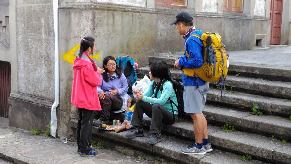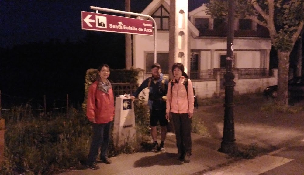 健行第五天,天未亮,走在有路燈的街上,冷清無人;進入樹林就一片漆黑,還好手機有照明功能,四人緊靠一起前進,偶而有其他健行者快步超越,很快就消失不見,這時就感嘆東方人腿短啊 !