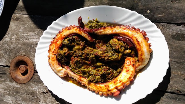 老闆娘很能幹,內場點菜、收錢兼大廚;甜點、飲料和做菜都一手包辦。老闆負責外場,喜歡和客人互動照相,哈拉言談間,對自家食物超有信心。這家的tapas真的超讚,您若走過、看過、可千萬別錯過。大家吃喝很開心,竟然吸引一位旅人跑到桌前來照相,他對那盤章魚特有興趣,照完相還問老闆這道菜的特色。餐後,四人也貢獻了四個空酒瓶,和別人一樣,在酒瓶上簽名並註明來自台灣。特別懷念這一餐,好吃極了!