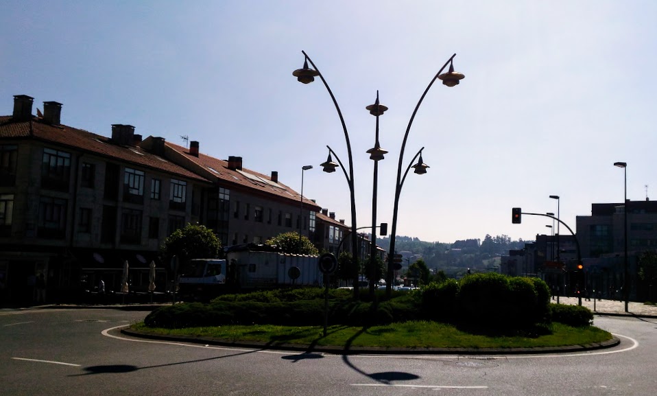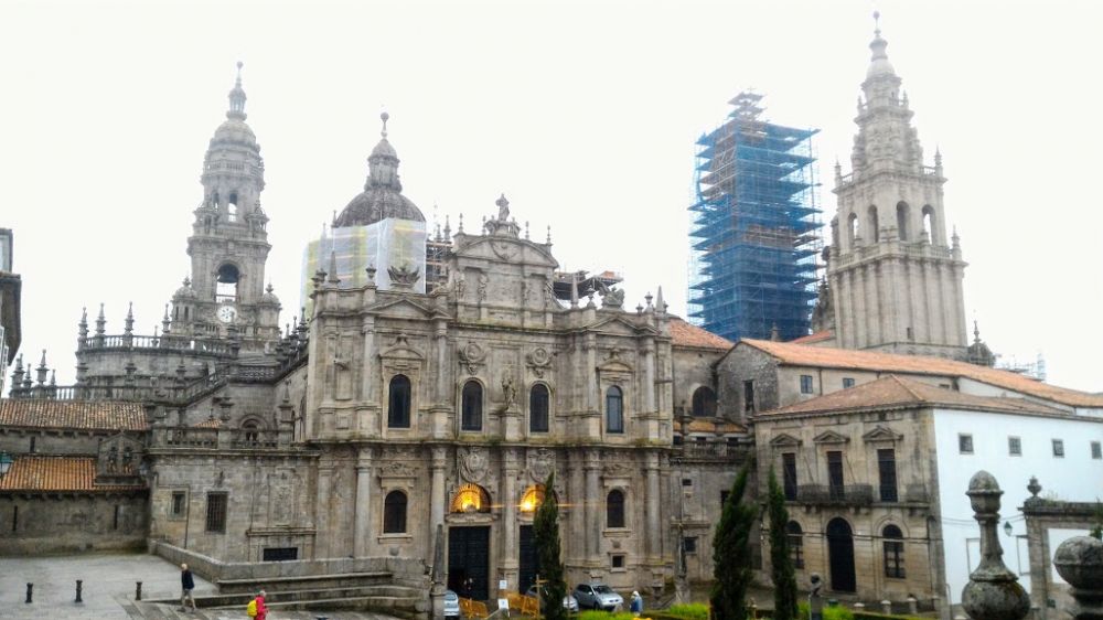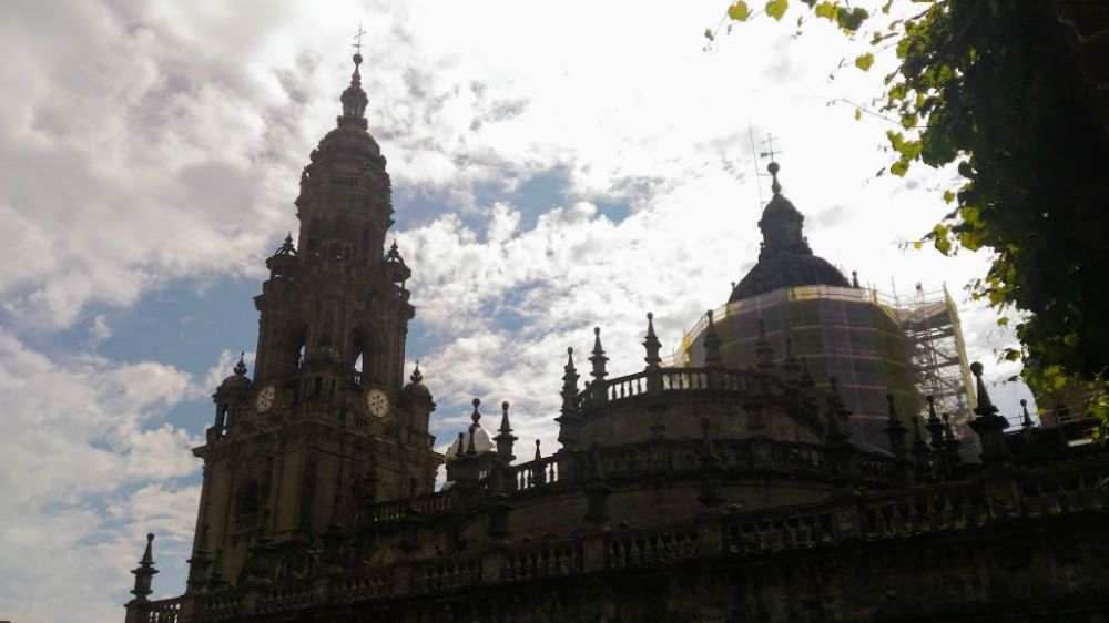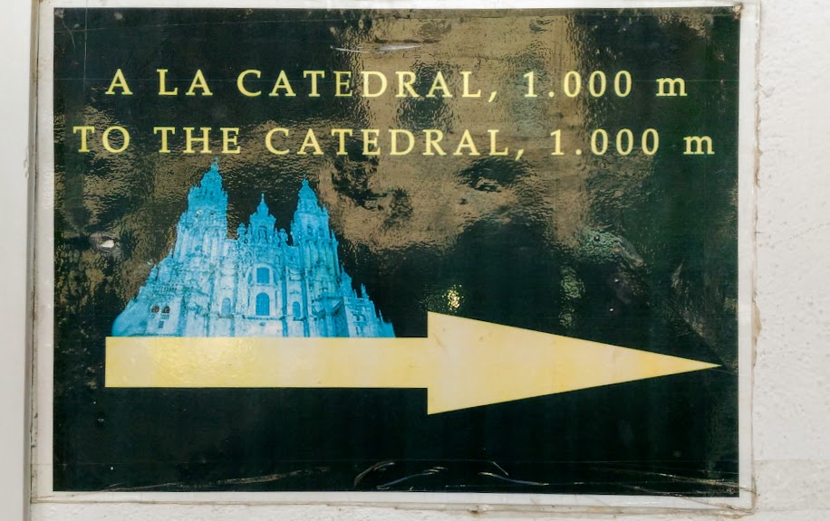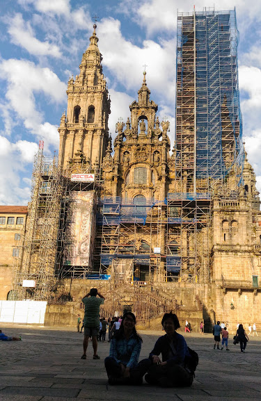 最後一天的里程只有十九公里,聽說在終點排隊領證書的人會很多,大家都急行軍,趕著進城。進入聖地亞哥城區後,身邊經過的人,就不一定是朝聖者,也就沒有了“Hola ”或“buen camino”的親切問候,感覺怪怪的。終點站就快到了,小艾的跛腳也可以休息了,