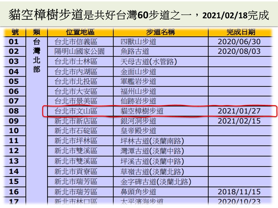 樟樹步道與樟湖步道位於台北市文山區,早期都是木柵貓空地區四通八達的保甲路,現在都已建設成為平緩舒適的休閒步道。探訪樟樹樟湖步道,感受早期保甲路的田野風光,可搭貓空纜車或是開車上山,是一個輕鬆的半日遊行程。