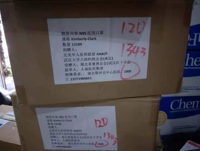 为了这个目标的完成,许多联盟会员和非联盟热心人开始了昼夜不停的辛勤劳动,终于在1月26日购买到了第一批大量物资:N95医用口罩1.7万个。这里我们要特别感谢北美华人医师联盟会员曹青医师和她的武大校友段蕾/吉力吉利夫妇,她们在第一时间为联盟联系了货源:位于缅因州的非盈利组织Partners for World Health。唯一的困难就是需要我们自己联系运输。于是就有了纽约徐明旭医师和他的儿子开车往返12个小时,亲赴缅因提货的动人故事(详情请见ANACP网站之明旭传, 或点击明旭记 及 远水与近火--- 北美华人医师联盟援助武汉疫情纪实)。