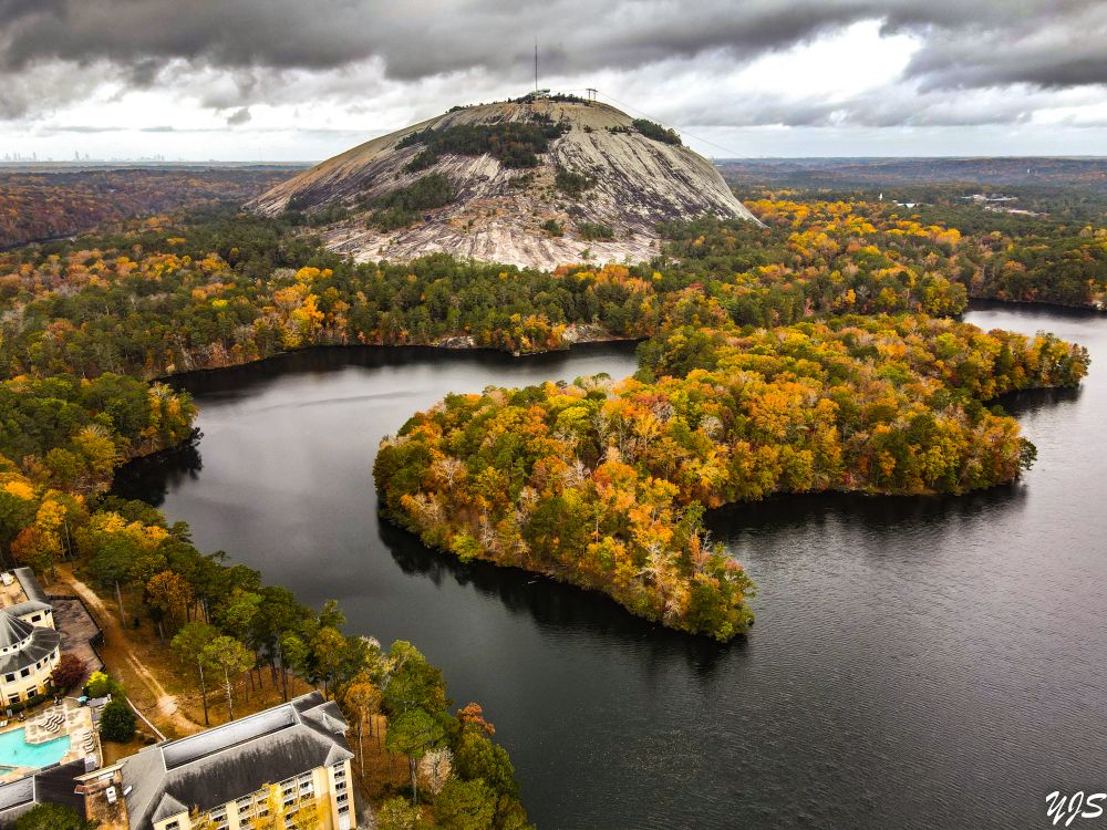 太阳渐渐隐落山头,远处的星星与水榭上的灯光交相辉映,群山环抱