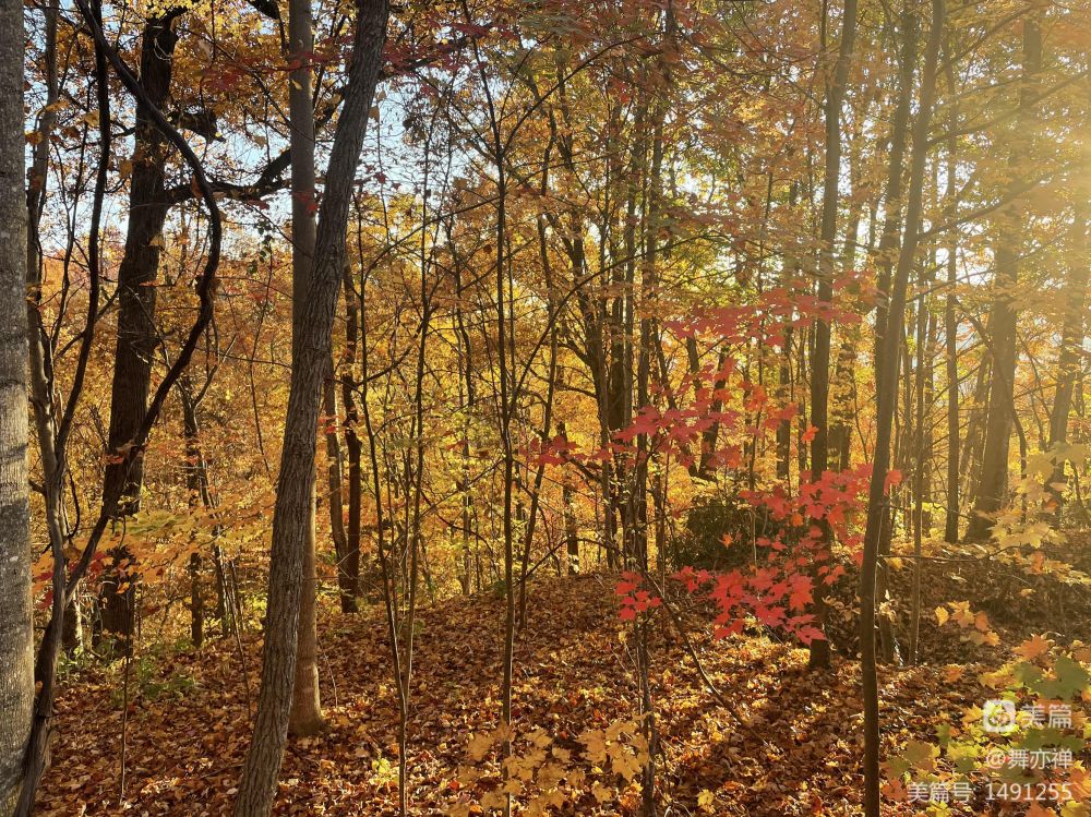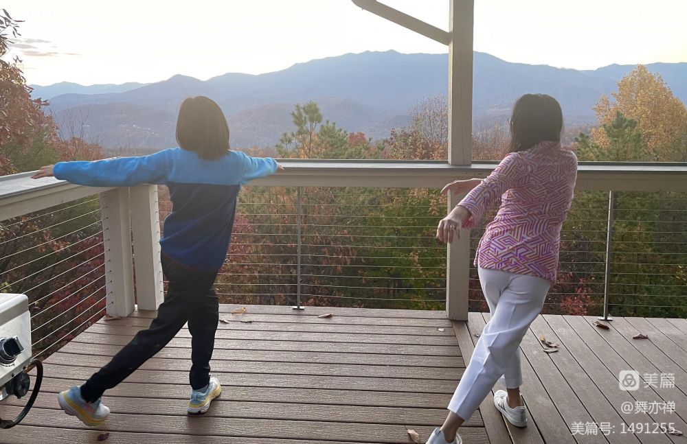 我们住在山顶上一个四面大玻璃窗的大房子里,三层楼。每层屋外都有一个deck。站在deck上放眼望去,群峦叠障,云烟飘渺,红叶绿树相掩映。美呆了。