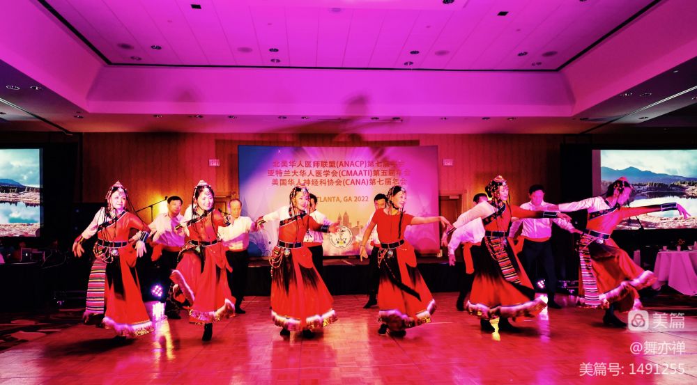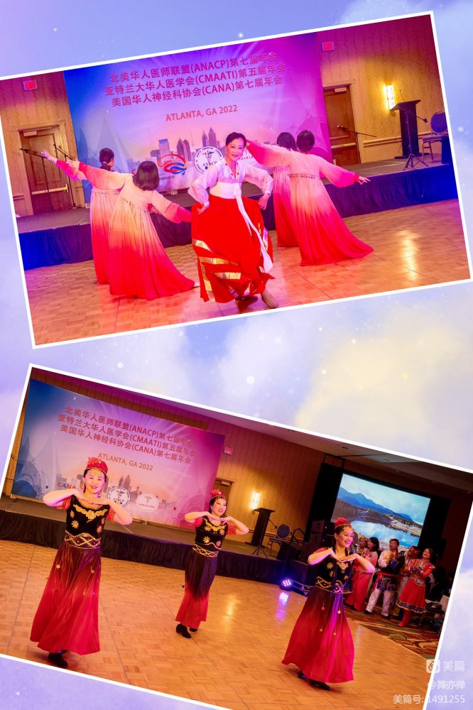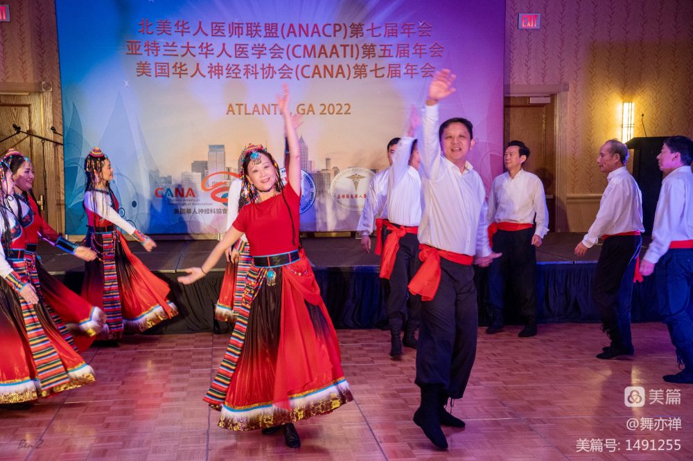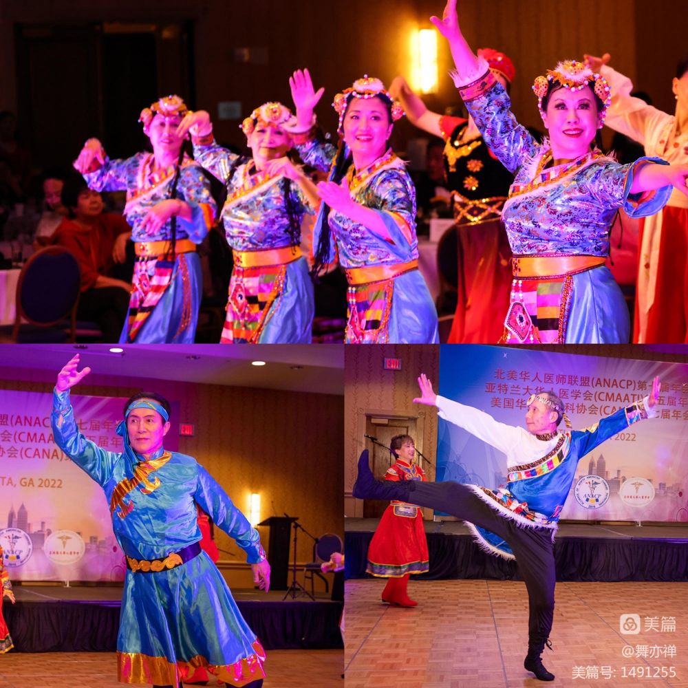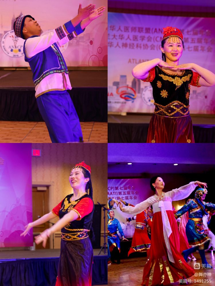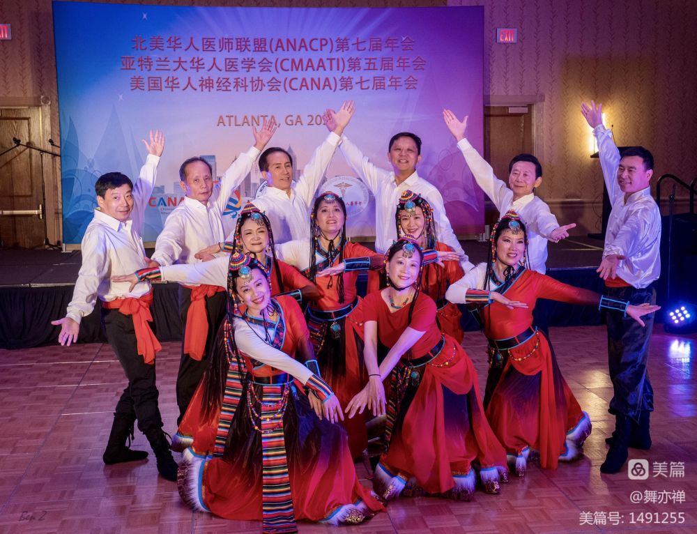 这两个舞蹈的准备工作早在年初就已经开始。从年初每个星期二晚上网课上学,格桑拉从7月份开始学。从八月底开始,两个舞蹈除了每个星期二晚上网上练习,每个星期天下午四个小时在RWJ auditorium实地排练。有几个医生要开一个半小时来排练。有些医生遇到on call, 练到一半还得必须赶往医院。海峰Cindy夫妻双双都参加了演出。还有程宏的太太,任晓旦,每周日都背着相机陪练,为我们拍下无数值得回忆的瞬间。当有女生临时因故不能前往亚特兰大时,晓旦欣然答应替补,圆满完成任务。"欢腾的草原"是开场节目。一出场,便赢的欢呼声和掌声。这次男医生们的加盟为这两个舞蹈增彩不少。数月的辛勤付出终于得到了回报。
