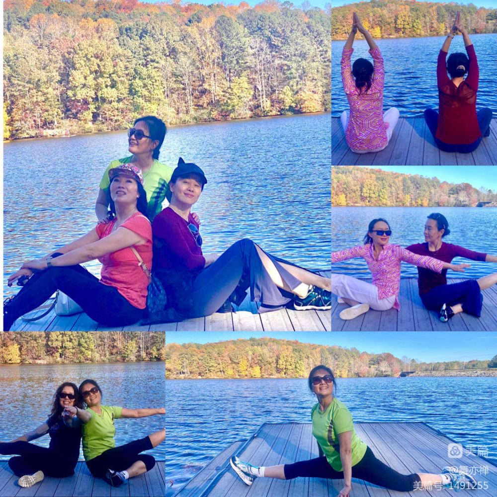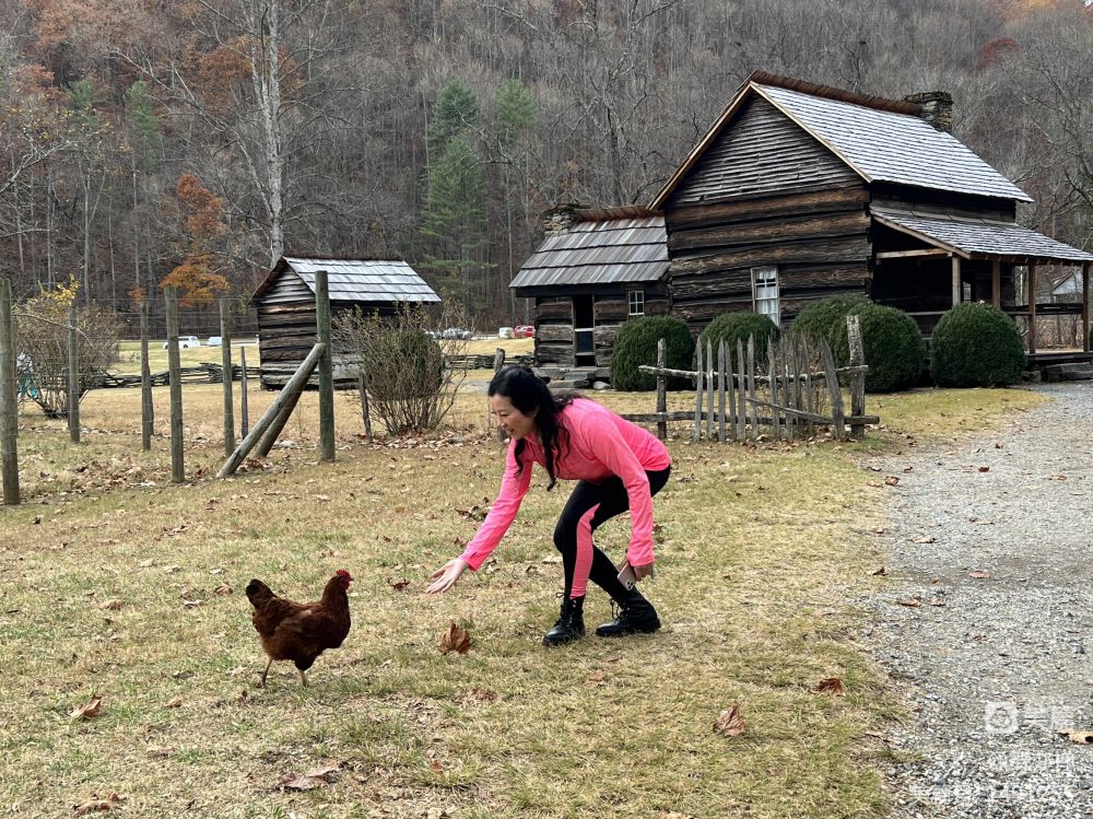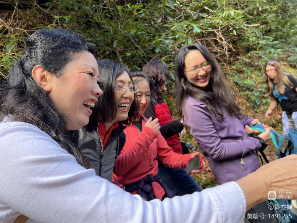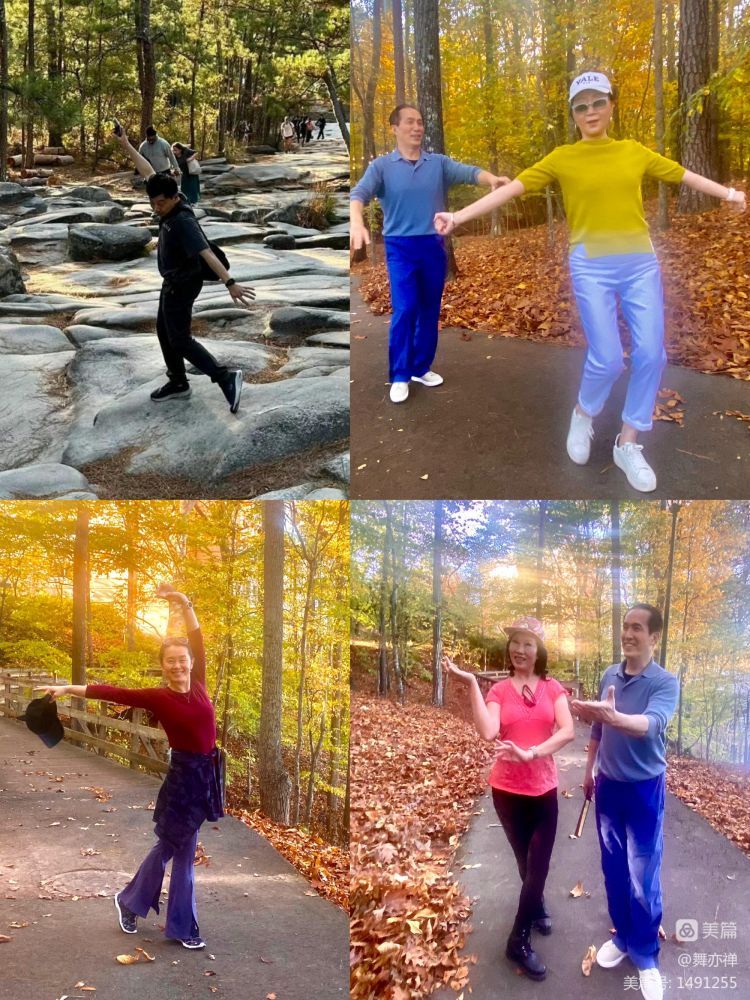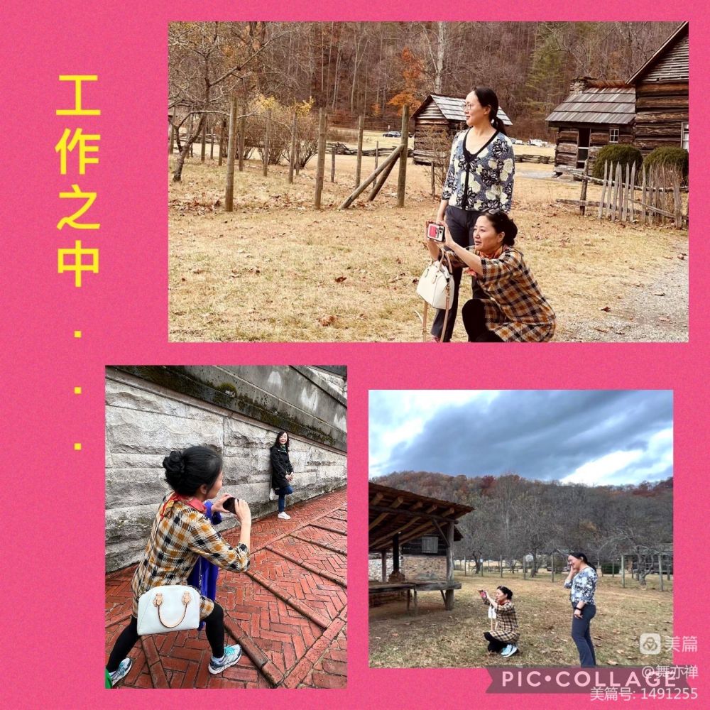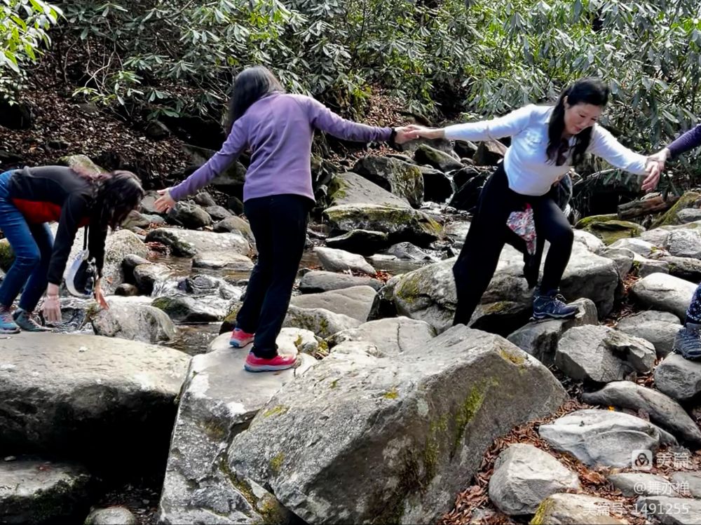下午,大部队沿着Blue ridge公路进发大烟山。一路上,雨水浸染过的群山尤其优美。远处山峦隐显于云雾中,近处红叶殷殷,绿枝郁郁,一幅幅如油画般的景色,从车窗外掠过,美不胜收,目不暇接。不时还遇见四处逍遥的熊孩子们。遇有outlook., 大家便下车来,除了欣赏美景外,蹦蹦跳跳,伸伸腿弯弯腰,顺便在大自然中狂欢一曲"回到山沟沟"。 年会星期五篝火晚会计划要跳这舞,可大家还不会。于是一路上一有空就带着跳一跳,跳几圈大家也都记得了。