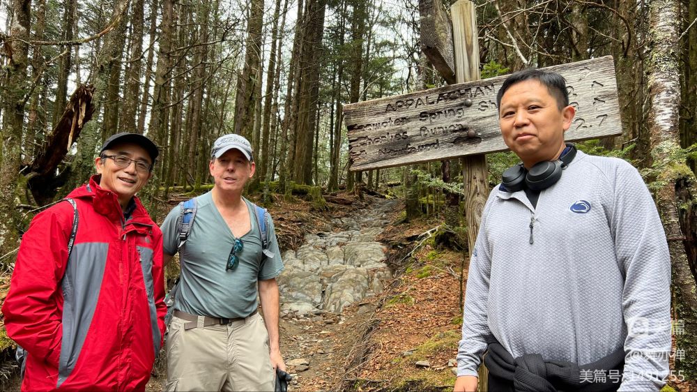 在Appalachian trail上碰到不少长途跋涉背包族们。这三人分别来自缅因,波士顿和康州,从北而下,已经走了四个多月了,一天走30英哩左右,还剩一周的路程便要抵达终点。他们这几个月,天当被地当床。一路走来,已经掉了30、40磅的体重。很敬佩他们的革命意志。