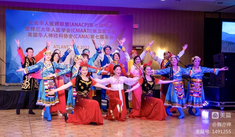 晚上的文艺晚会,群星璀璨,节目丰富多彩。我们新泽西为这次为年会带去了四个节目,两个群舞,一个女生独唱和一个女生小合唱。这两支舞蹈都是刘福洋的原创网红舞蹈。"欢腾的草原"原名站在"草原望北京",主要有两个不同的版本,刘福洋原创及师院改编的。今天我们跳的这个舞蹈,依这两个版本根据医生们舞蹈水平编排而成。舞蹈含有蒙古,藏族,朝鲜和维吾尔族舞蹈的元素。舞蹈欢快热烈,颂扬草原民族奔放的性格和美好的生活。我们站在草原遥望家乡,盼望新冠早日结束,能回家与亲人团聚。