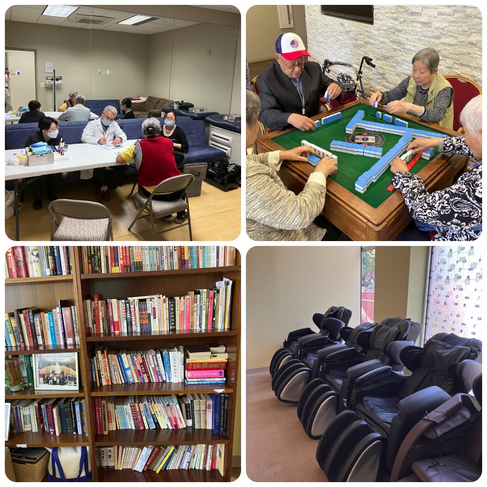 创办这个老人活动中心的机构叫“银光老年协会”,是个非盈利组织,经营了20多年了,在维州有好几个活动中心。从设施上看很不错,有医疗室、阅览室、游戏室、按摩室、餐厅,还有一个“清净室”,可以安安静静呆一会儿,或打坐冥想。医疗室每天有医生,做简单的身体检查,还给开药。餐厅有个舞台,可以演节目,举办讲座,教太极瑜伽。每天有五六十人,车接车送,从早上八点到下午两点,中午吃顿饭。主管告诉我,这些老人都是低收入,大部分都80岁以上,最长者95岁,费用都是Medicaid来付。我问他,要是不符合Medicaid条件也可以来吗?他说自费每天70块。
