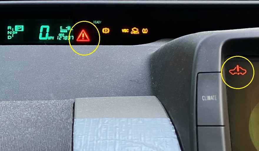 就这样,开了16年,各种小毛病最近相继出现。先是收音机不响了,然后遥控不灵了,轮胎压力器TPMS不传感了,车里进雨水了,防滑系统VSC灯亮了,有两次车死活不肯熄火…雨水问题自己解决了,其他问题就没辙了。车行说不影响开车,也可以通过年检,所以就继续开,直到“死亡红三角”警告灯又亮了。