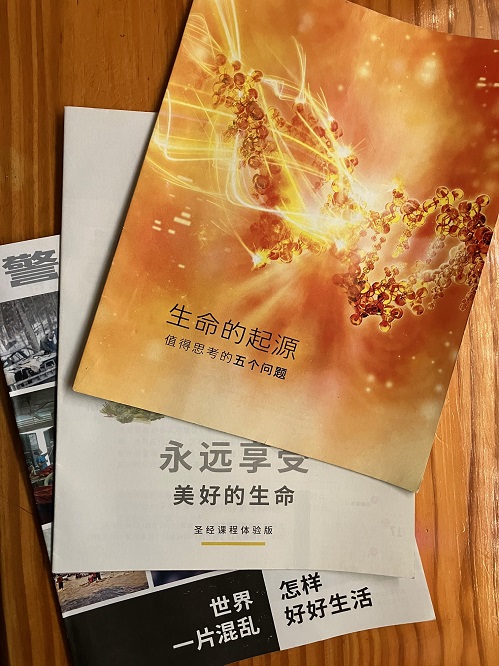 过了一段时间,这位华人妇女又登门,这次是跟一位从西安来的姑娘。她们大概是看到我是争取对象,很想跟我多聊聊,西安姑娘也讲自己过去不相信有上帝。我表示有兴趣多聊聊,但没有请她们进门,建议找个机会去喝咖啡。她们留下了些宣传品,表示以后会找机会去喝咖啡。