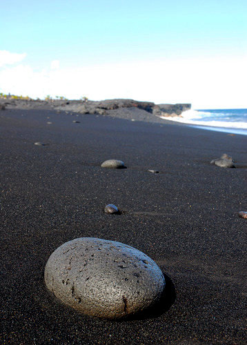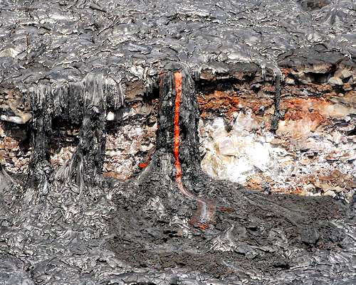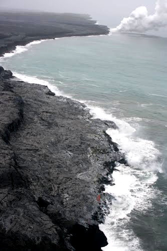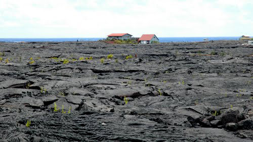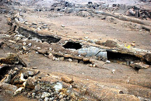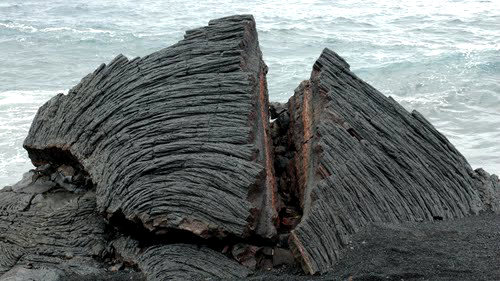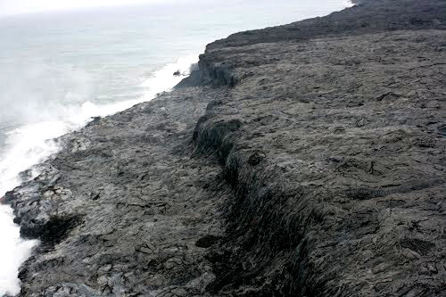 凝固后成新陆地的海边.