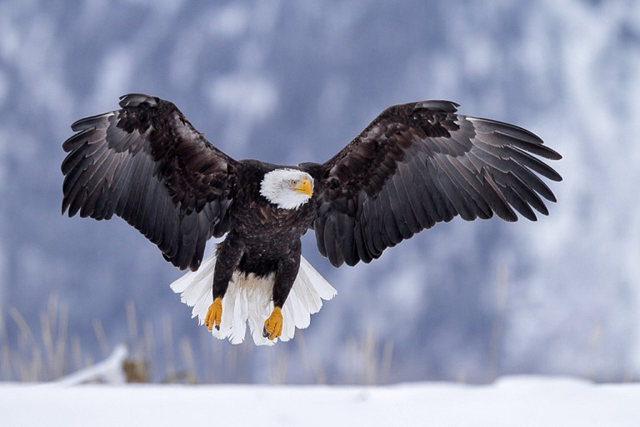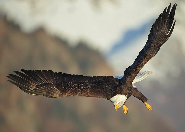 在阿拉斯加拍摄白头鹰.以几人合包一只船,由当地人把船驶去白头鹰出没的湾边.费用比包钩鱼船便宜.