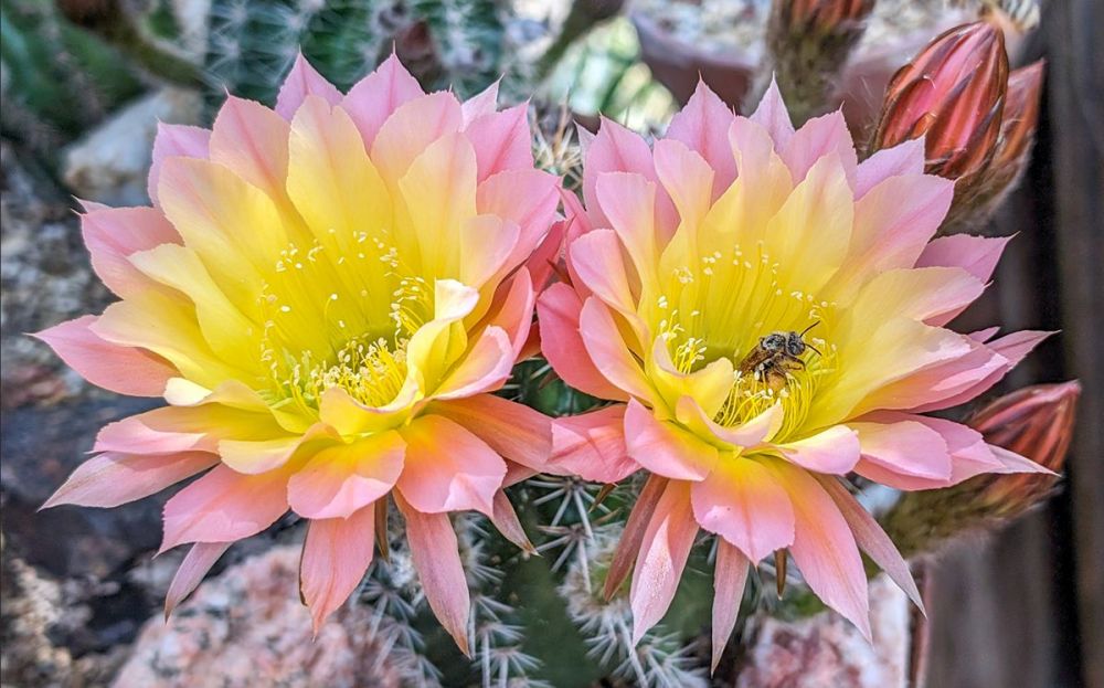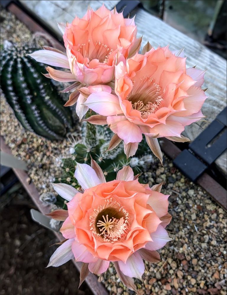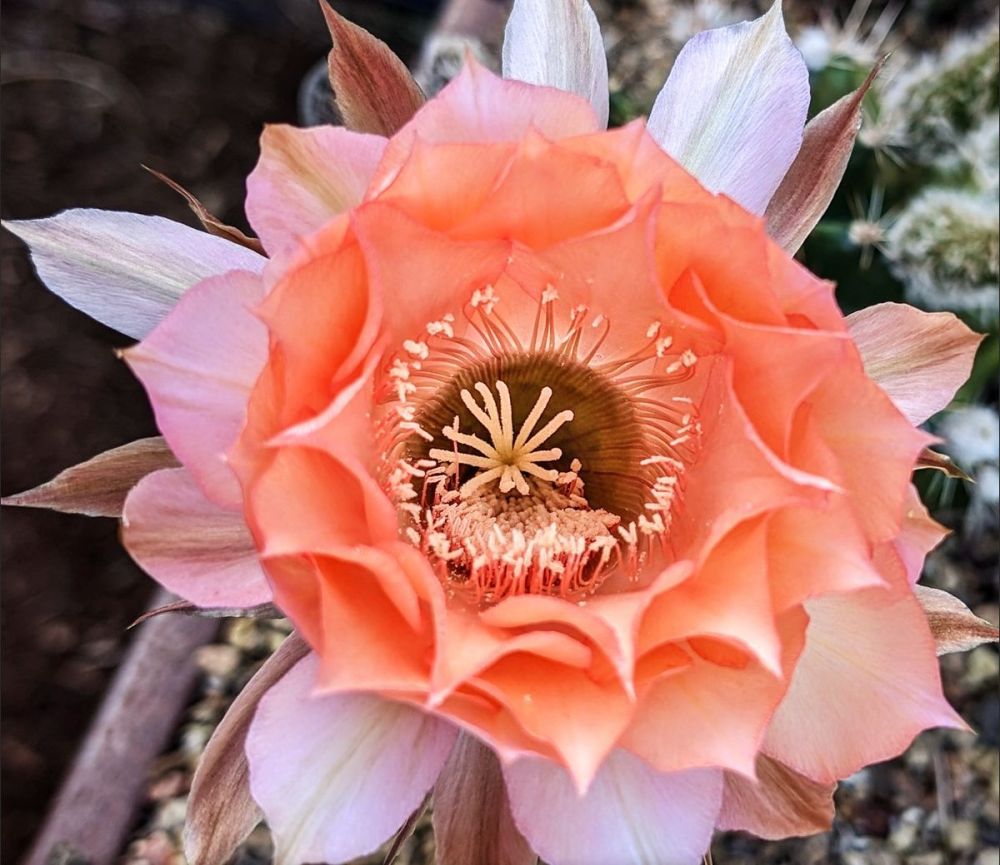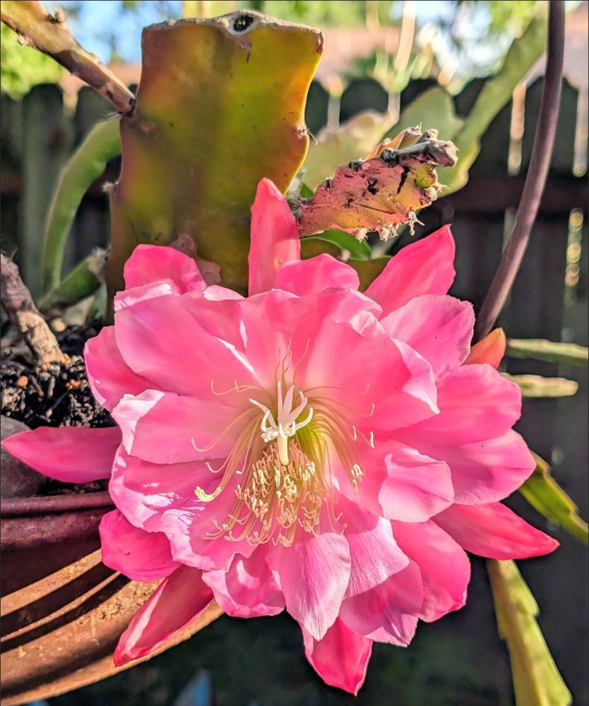 踏入6月,从那时起,我们花园里的许多仙人掌都很忙,所以这是一篇相当长的帖子,有很多照片。我知道包括这么多照片可能会导致你们中的一些人对仙人掌花感到疲劳,但我希望你们能坚持到最后——有很多美花可以欣赏。这株兰花仙人掌(昙花杂交种)是我搬到另一个州的朋友送给我的。像所有的昙花一样,它是一种不起眼的植物,一年中大部分时间都不会受到太多关注。但当它开花时,就会非常壮观。