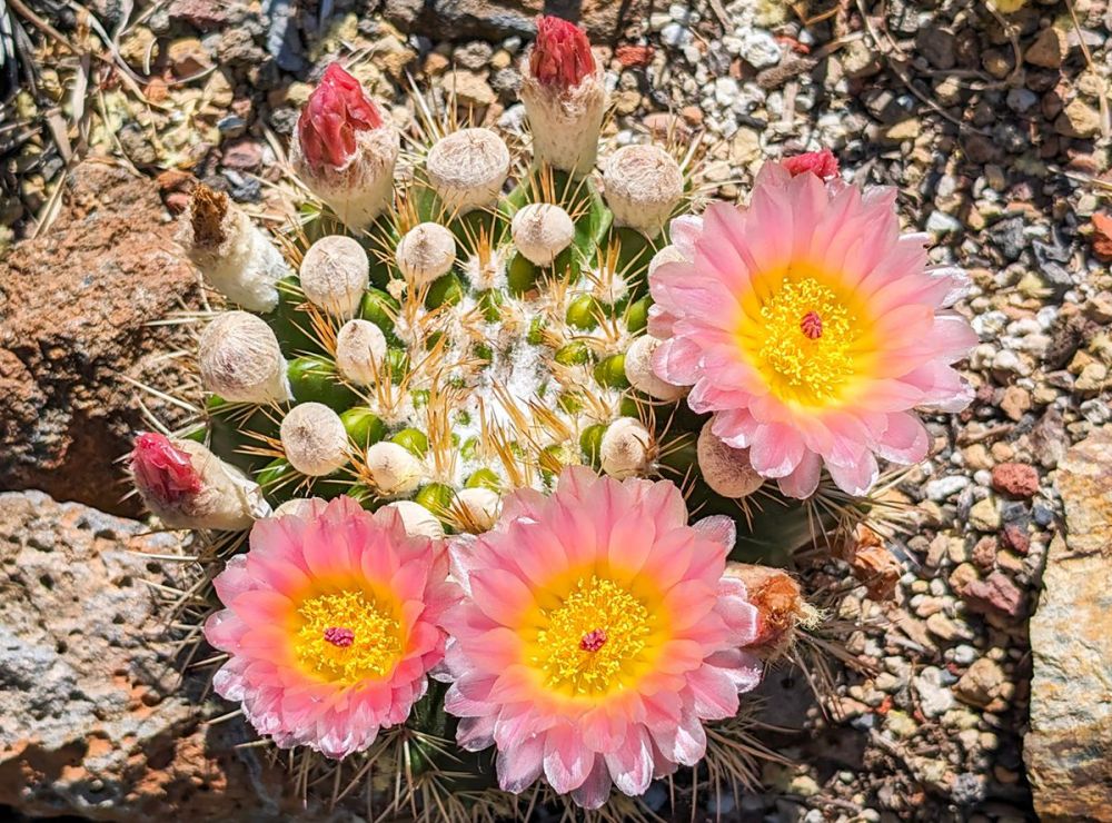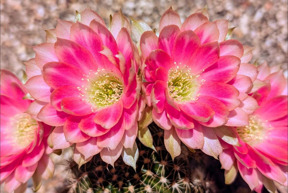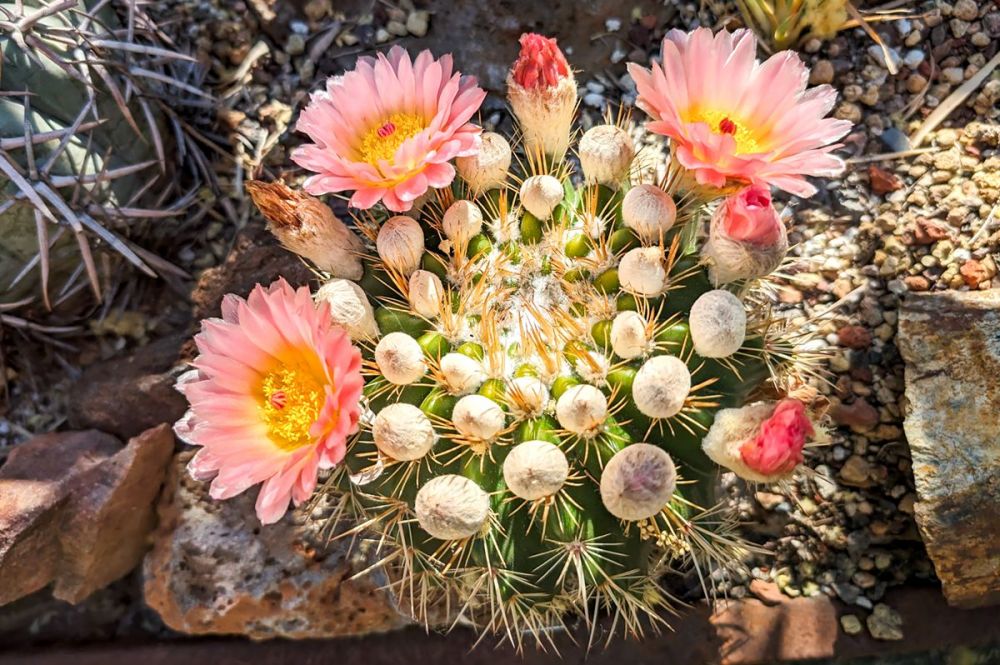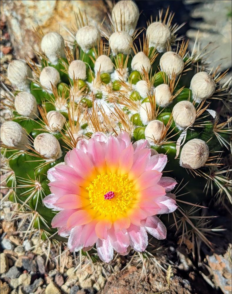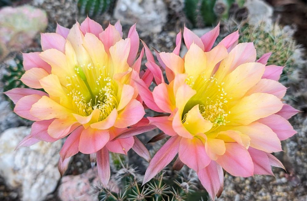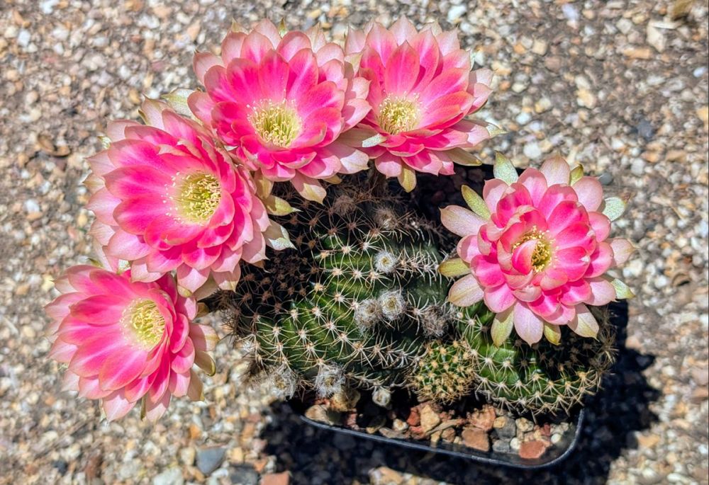 Notocactus 和 Parodia 是来自南美洲的球形仙人掌属的相关属。因其鲜艳的粉红色花朵和黄色中心而引人注目。