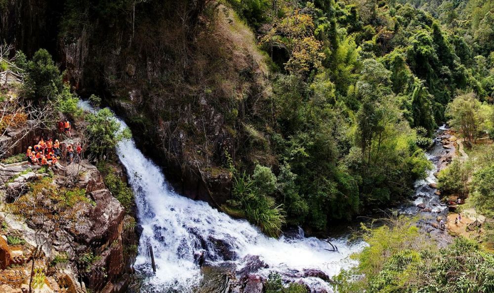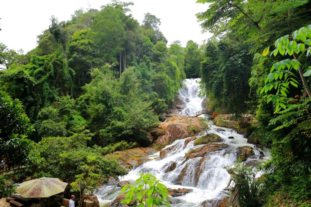 大象瀑布(Elephant Falls)因当地人发现一块形似大象头的巨石而得名。这座多层瀑布位于南班村附近,由于地处偏远,大多数日子里都相对安静。您可以乘坐上午 6 点至下午 6 点从大叻市中心出发的当地巴士前往瀑布。