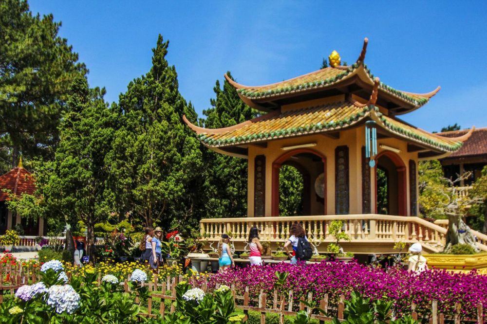 大叻花园(Da Lat Flower Gardens )位于春香湖北侧,占地 7,000 平方米。大叻以各种色彩缤纷的花卉和植物而闻名,因此该公园是该城最受欢迎的景点之一。大叻花园成立于 1966 年,种植了约 300 种花卉,包括兰花、绣球花、玫瑰、三色堇、含羞草和桃花。由于其中一些花卉全年盛开,因此无论您何时参观,花园总是美丽的。