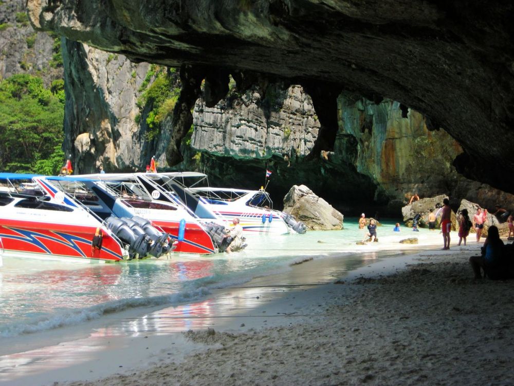 维京洞穴(Viking Cave)是皮皮岛上最著名的自然景点之一。它位于岛屿东北侧高高的石灰岩悬崖底部,从通赛湾(皮皮岛的主要码头)乘坐长尾船大约需要 30 分钟即可到达。