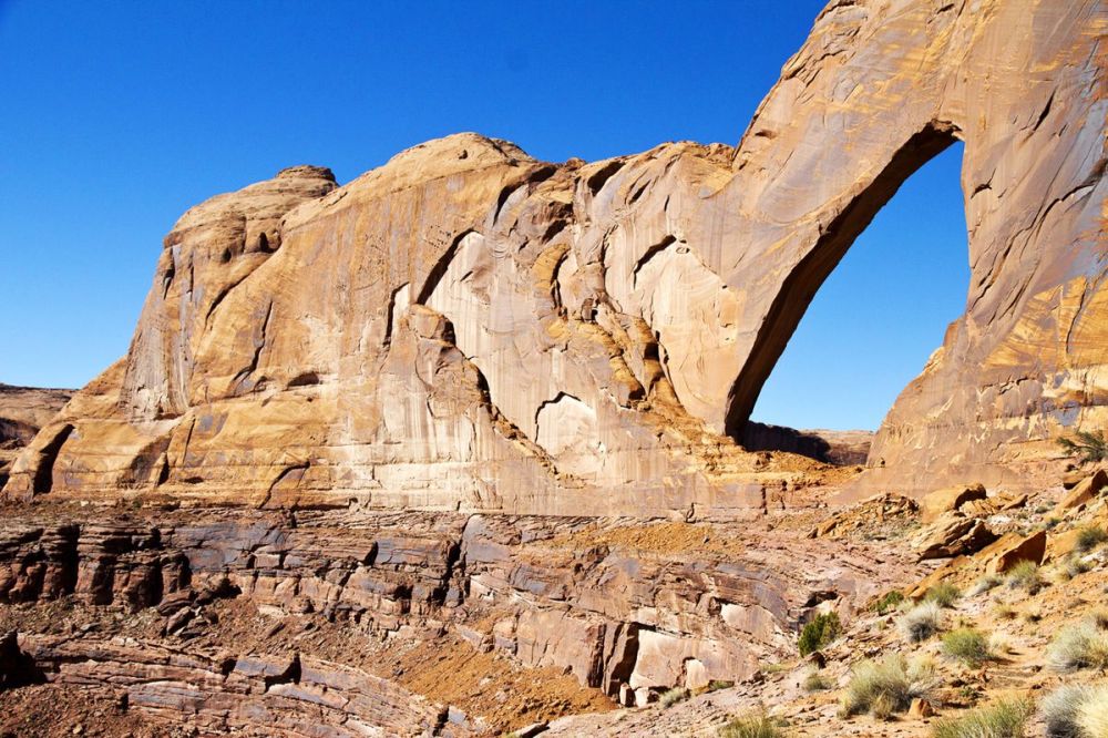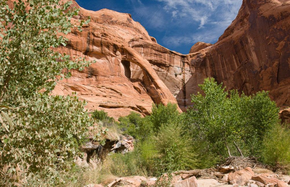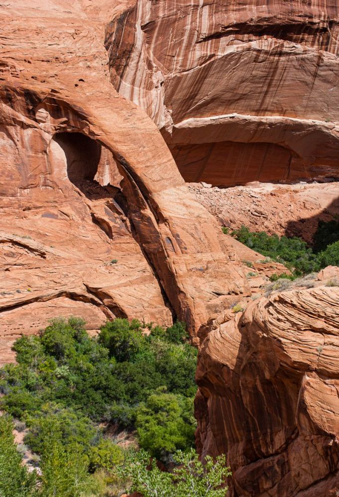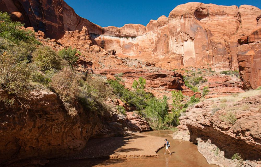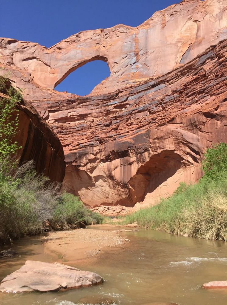 我们在距离小溪入口 4.0 英里/6.4 公里处遇到了 Coyote Gulch Natural Bridge。这可真是一次邂逅!小溪和徒步旅行者都从这里穿过。