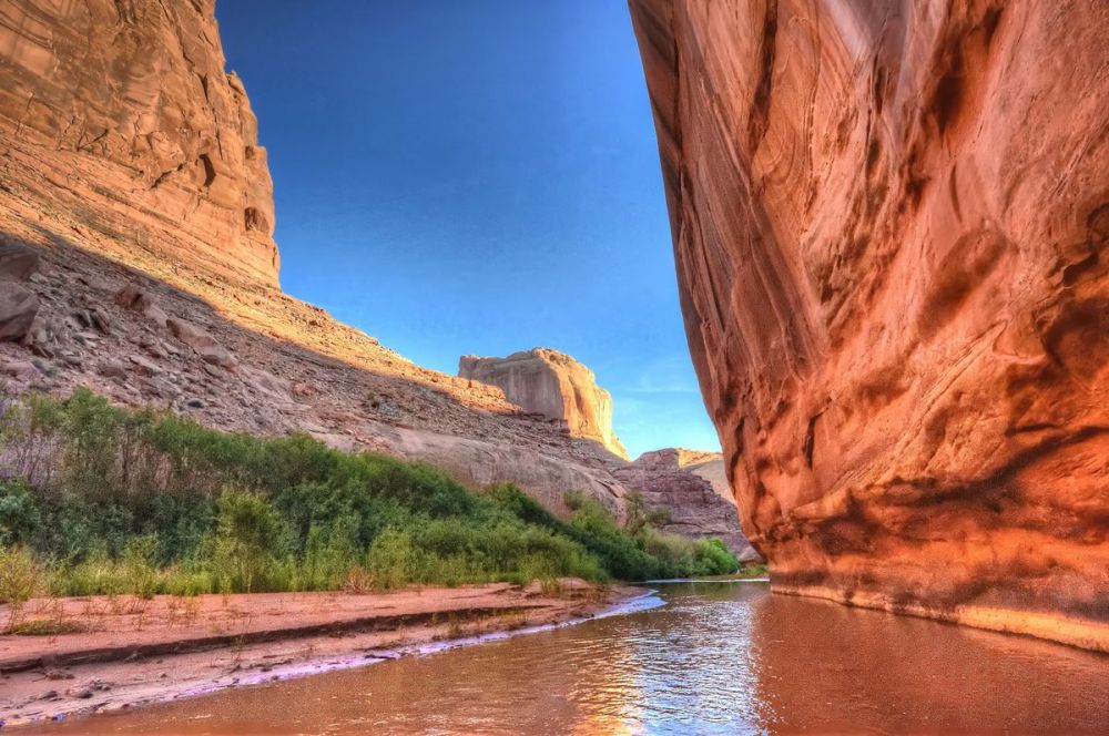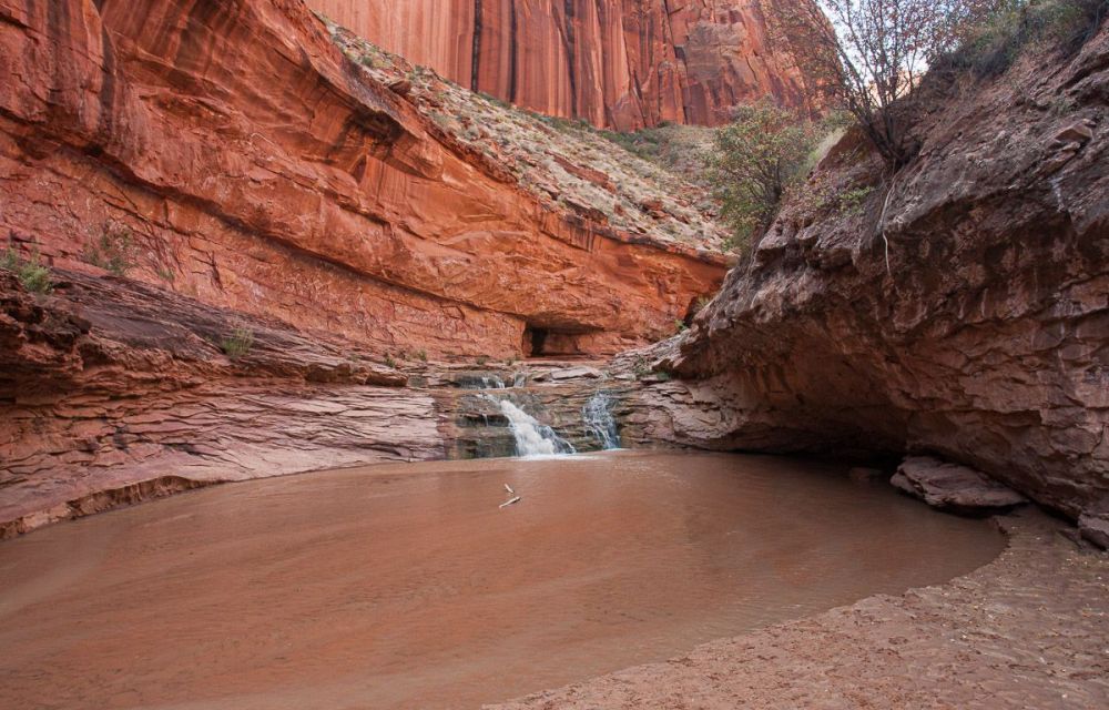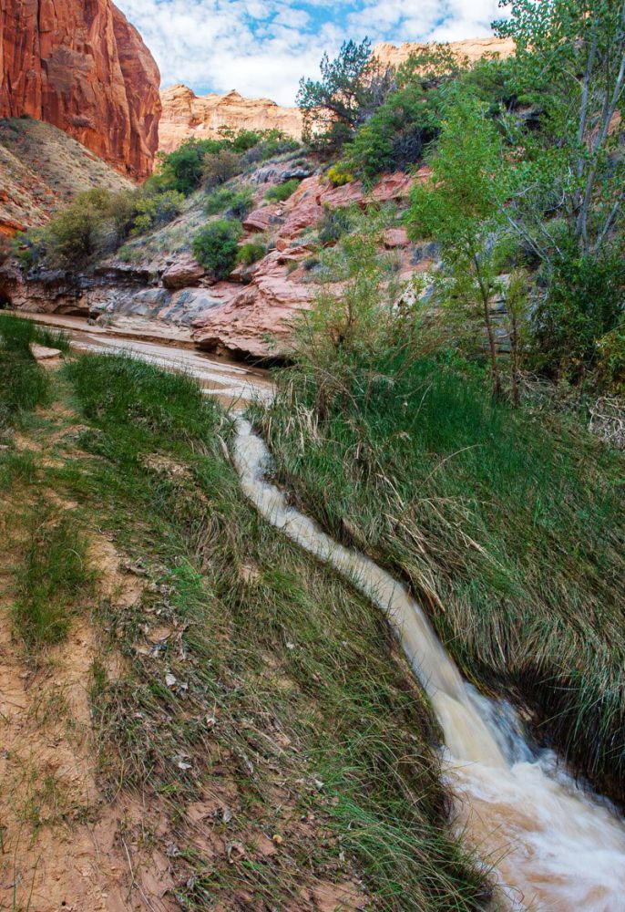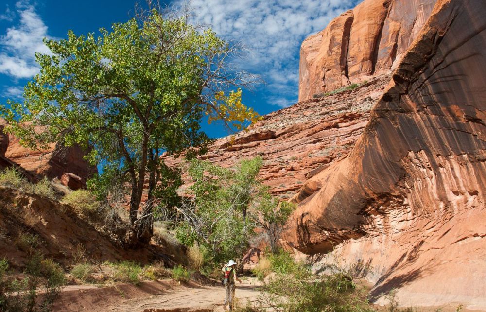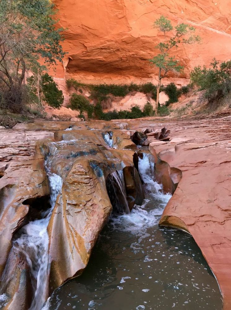 到达峡谷底部后,徒步的感觉完全不同了。上面我们穿过一片严酷、干燥、没有阴影、坚硬的沙漠世界,到处都是棕色和红色的色调。然而,我们在底部发现的绿色世界却郁郁葱葱、阴凉、柔软且水汪汪的。土狼峡谷在我们探索过的犹他州峡谷中独一无二,因为里面一直有水。