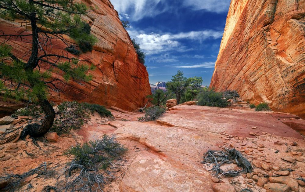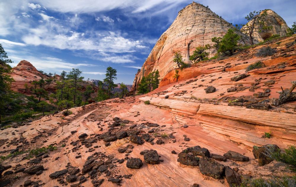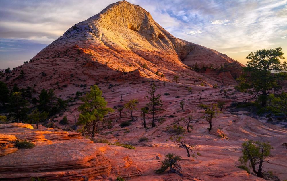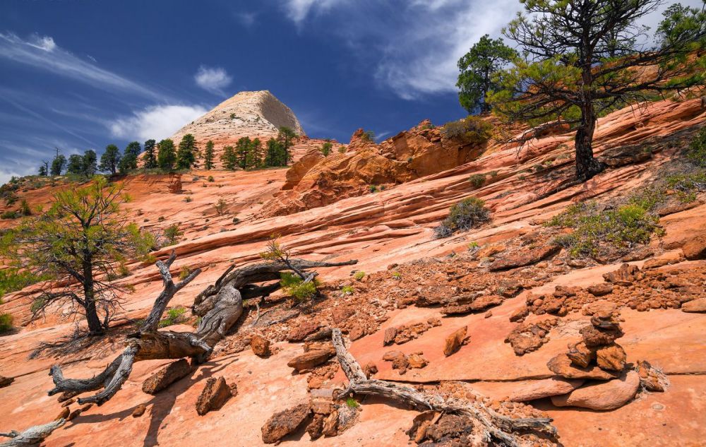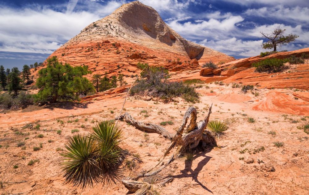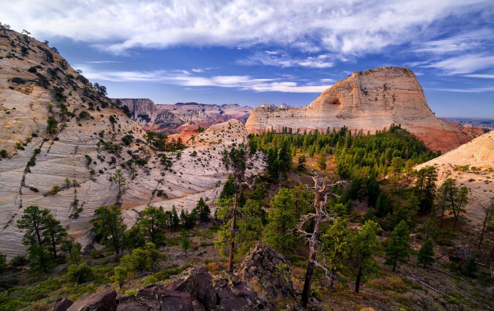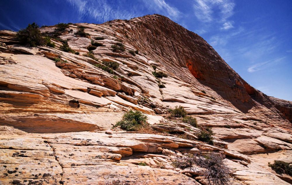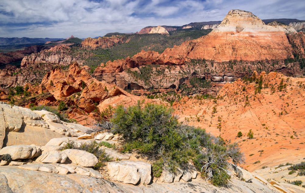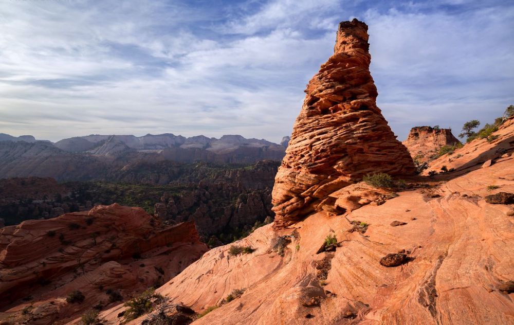 南守护天使山是锡安国家公园科罗布台地部分最独特、最引人注目的山峰之一。 与该地区的其他山峰不同,南守护天使山是远程的。 它位于北溪左叉(又名“地铁”)和北溪右叉之间的孤立高原上,虽然风景很壮观,但这条徒步路线的长度和难度使得它不是一条受欢迎的路线。