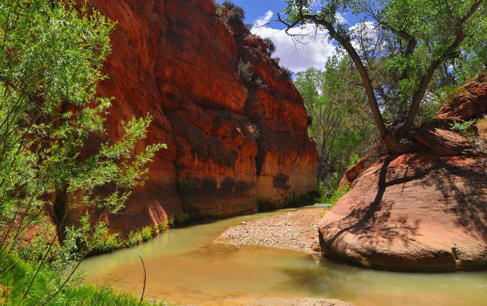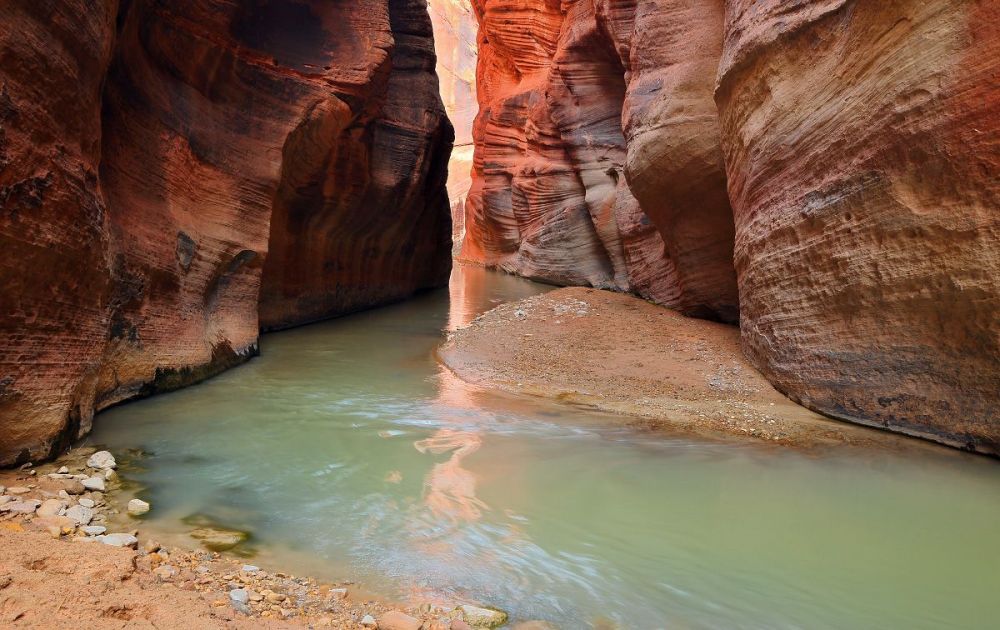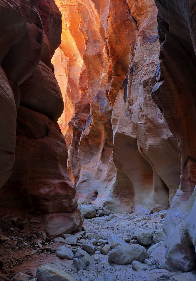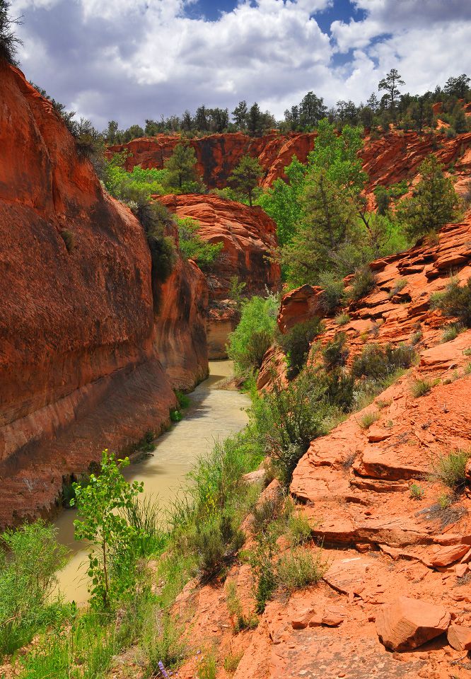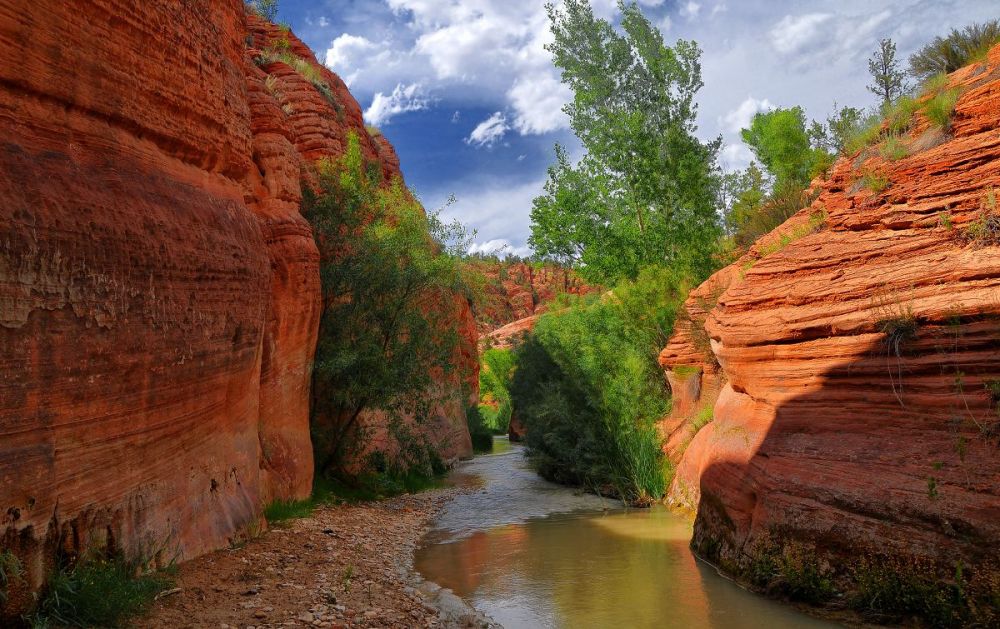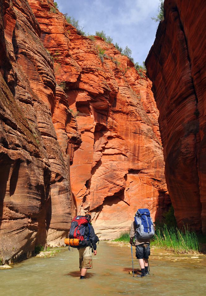在 BLM 领土内的 NPS 边界以东,有一段美丽而偏远的峡谷,被称为维尔京河东叉(又名“军营”)。 这条背包旅行路线从卡梅尔山交汇处以南的 89 号公路出发,沿着东岔路行驶近 20 英里。 “兵营”指的是黄金地段,这里的墙又高又窄,让人想起更受欢迎的锡安海峡(北叉)。 注意:下帕鲁努威普峡谷(公园内)是自然研究禁区,因此这条路线的终点是棋盘台地。
