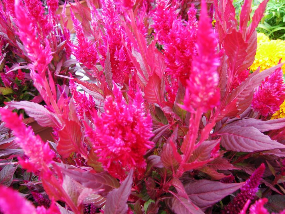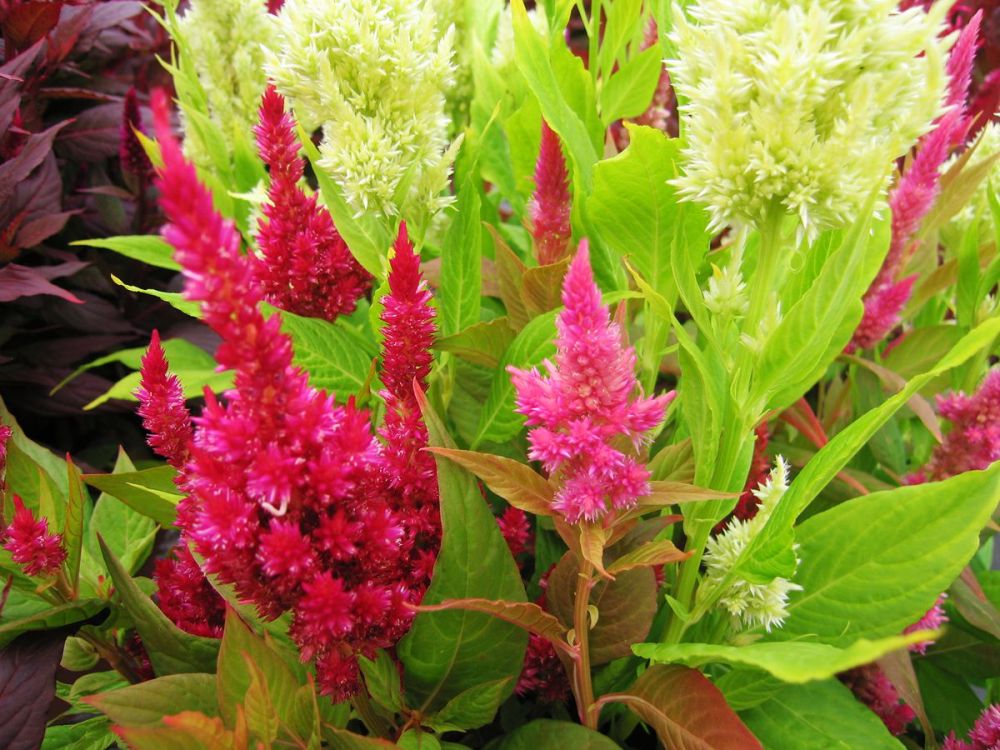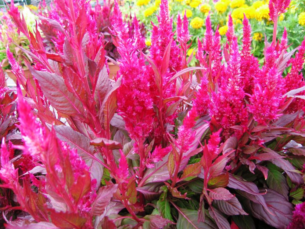 羽状鸡冠花是一种一年生草本植物,是羽状鸡冠花属中的一种紧凑型鸡冠花,其特点是狭窄的金字塔形羽状花头(4 到 10 英寸长),由细小、密集、色彩鲜艳的花朵和直立的茎组成,茎呈矛状绿叶。这是一种很好的切花,从夏天到秋天一直开花,可能持续到第一次霜冻。